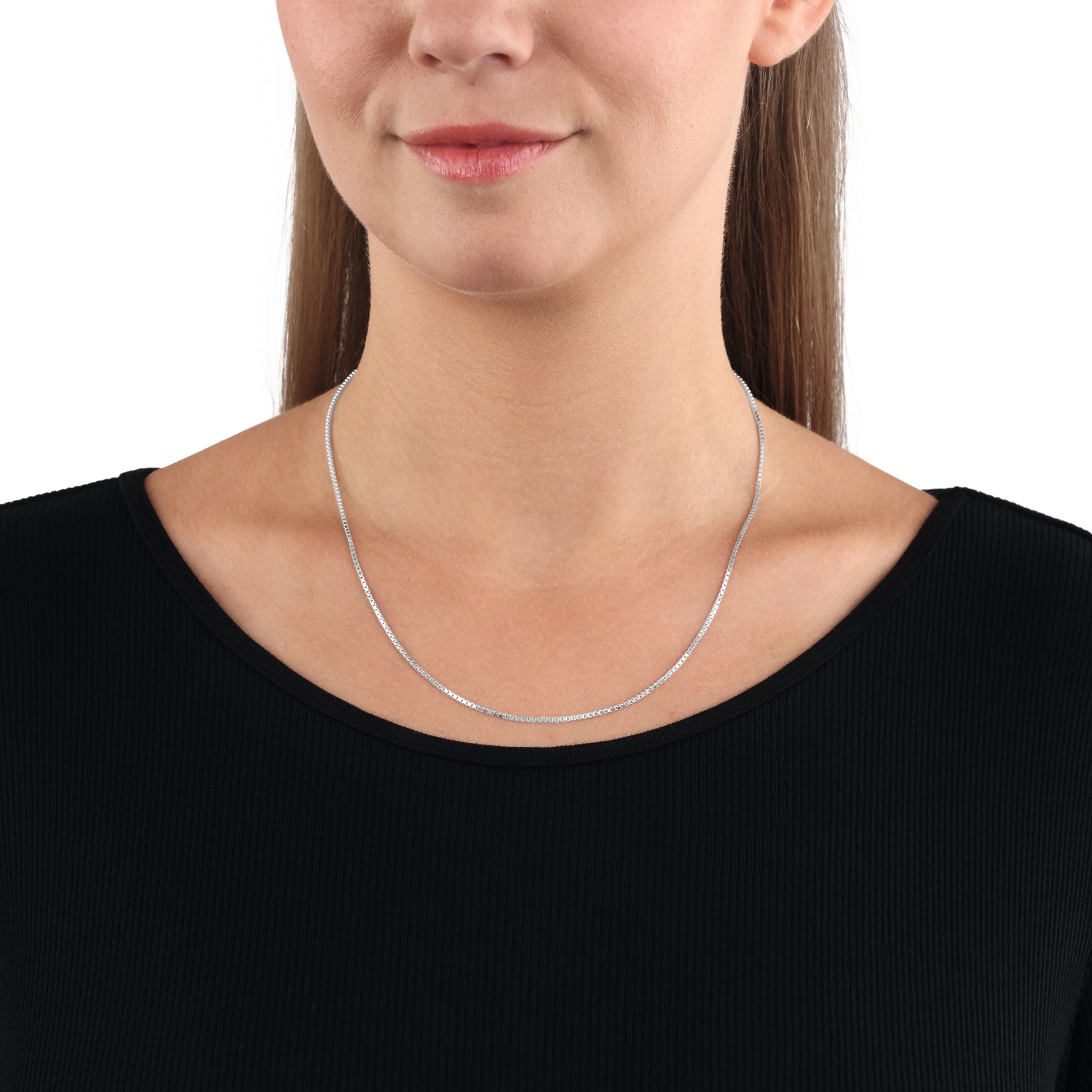 Die klassische Eleganz der sehr robusten Venezia Gliederung macht diese Halskette zu einem perfekten Basic Teil für Frau und Mann. Die Kette ist aus 925 Sterling Silber hergestellt und besitzt eine Länge von 45 cm. Schließen lässt sie sich über einen Federring.