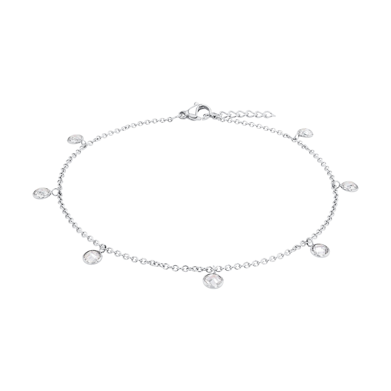 Sommerliches Fußkettchen für Damen von Amor. Die filigrane Ankerkette aus robustem Edelstahl 316L ist das perfekte Accessoire für laue Sommernächste. Die mit Zirkonia Steinen besetzten Anhänger sind das i-Tüpfelchen dieses Fußschmucks. Jeder der sieben Anhänger, die an ein Bettelarmband erinnern, trägt einen Zirkonia Stein. Die Fußkette ist längenverstellbar (23+2 cm) und passt sich somit bequem seiner Trägerin an. Das Sommeraccessoire lässt sich gut mit weiteren Schmuckstücken kombinieren. Mit dem passenden Outfit und der richtigen Sandale erschaffst du den perfekten Look für warme Tage. Entdecke darüber hinaus das passende Armband und komplettiere deinen Look.