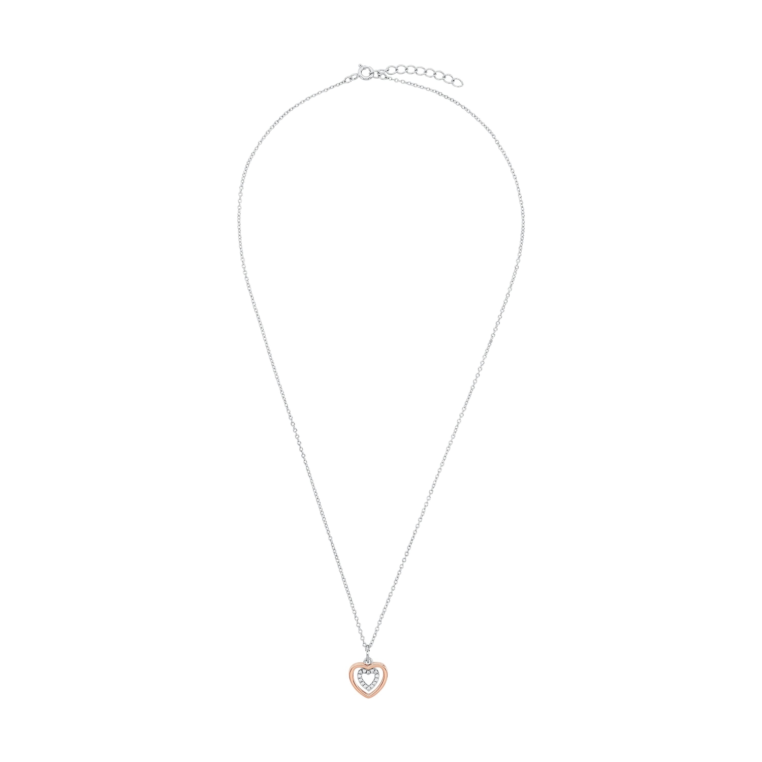 Damen-Halskette von Amor. Diese Halskette für Damen von der beliebten Echtschmuck-Marke Amor präsentiert sich im Herz-Design. Die Echtschmuck-Halskette wurde aus hochwertigem 925 Sterling Silber gefertigt. Diese Schützt das Accessoire vor dem Anlaufen. Die ca. 1 mm starke Ankerkette hat eine Länge von 42 cm, kann jedoch bei Bedarf auf bis zu 45 cm verlängert werden. Dies ermöglicht es dir, die Damenhalskette Silber 925 an unterschiedlichen Outfits zu tragen. Für den sicheren Halt beim Tragen sowie eine einfache Handhabe sorgt der praktische Federringverschluss. Absolutes Highlight und Herzstück der Halskette ist der herzförmige Anhänger. Im zeitlosen Cut-Out Design präsentieren sich gleich zwei unterschiedlich große Herzen im bicoloren Look. Zusätzlich ist das innere Herz mit zahlreichen strahlenden Zirkonia Steinen verziert. Ein echter Eyecatcher! All dies ermöglicht es dir, die Halskette mit Herz-Motiv als Einzelstück zu tragen oder mit weiteren Schmuckstücken wie Ohrringen und Armbändern zu kombinieren. Erschaffe deinen ganz persönlichen Stil. Die Echtschmuck-Halskette aus Silber 925 kommt in einer passenden Schmuckbox - eine tolle Geschenkidee.