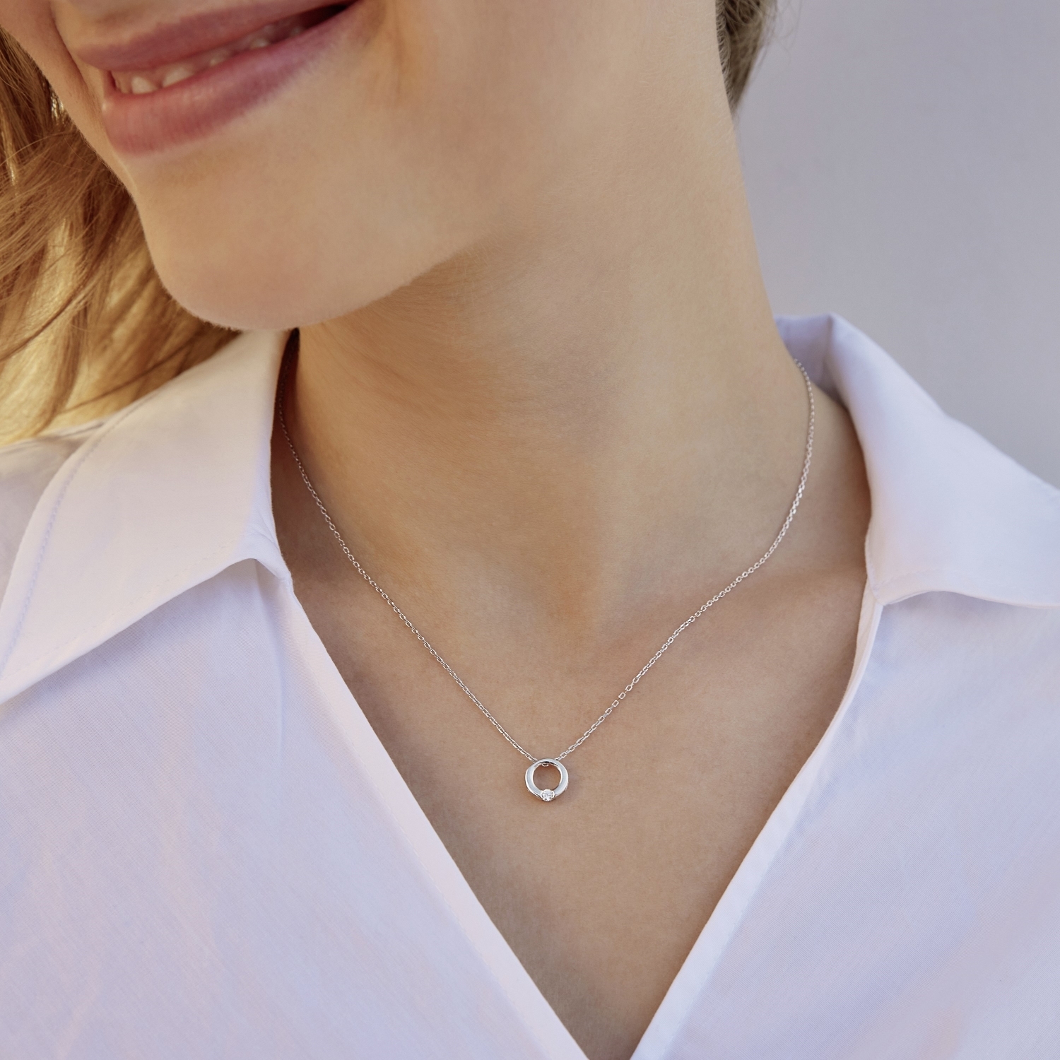 - Der ringförmige Anhänger der Halskette Damen 925 Sterling Silber ist mit funkelnden (synth.) Zirkonia Steinen verziert. Die Halskette lässt sich gerne mit weiteren Schmuckstücken kombinieren