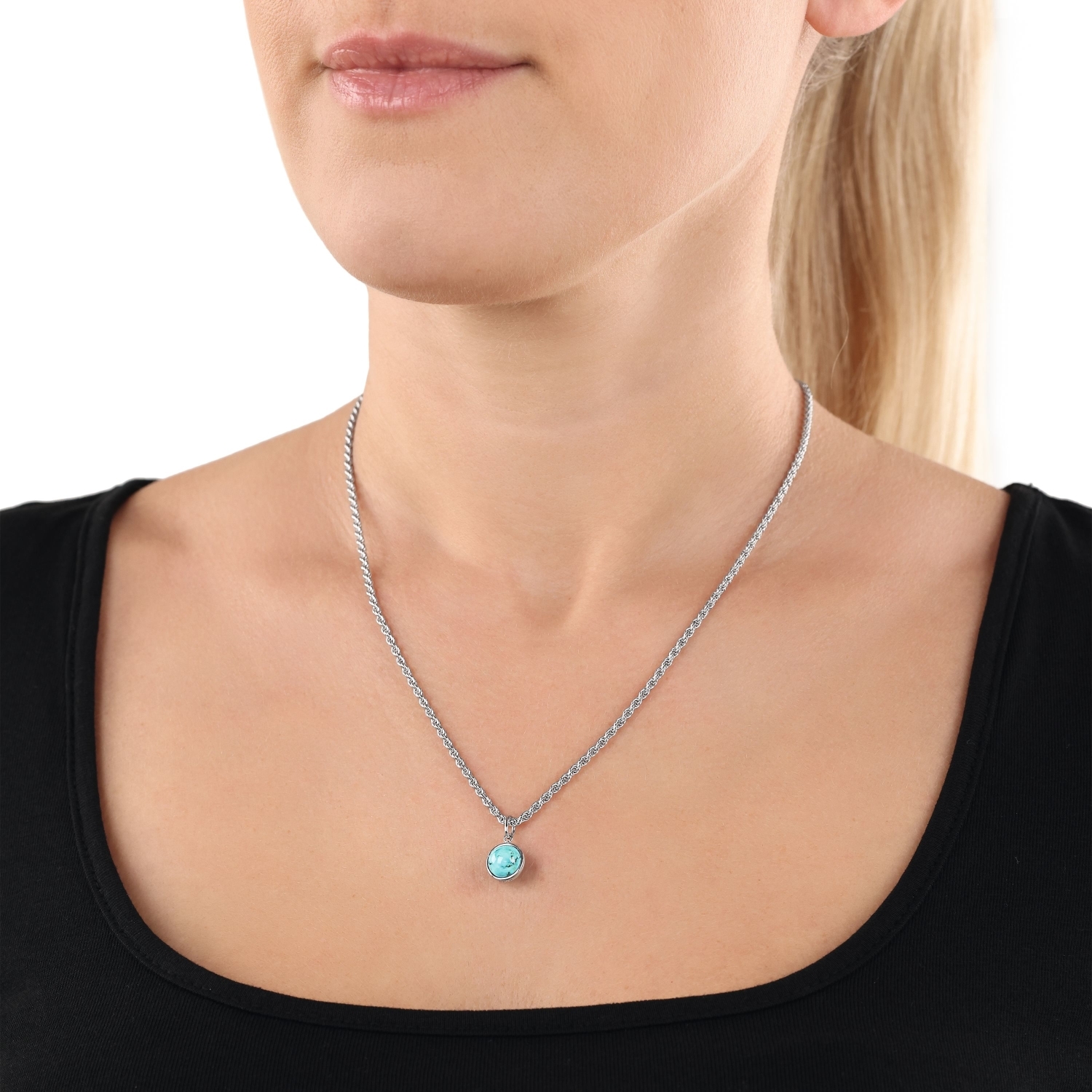 Diese Halskette der Marke Amor kombiniert unterschiedliche hochwertige Materialien zu einem wunderschönen Schmuckstück. Ein kugelförmiger Schmuckstein dient als Anhänger und stellt das Highlight der filigranen Kette mit Kordelgliederung dar. Der Halsschmuck besteht aus hochwertigem 925 Sterling Silber und hat eine Gesamtlänge von 45 cm. Der praktische Karabinerverschluss sorgt für ein einfaches An- und Ablegen. Kombiniere die Kette gerne mit weiteren Schmuckstücken, wie dem passenden Armband oder den passenden Ohrringen.