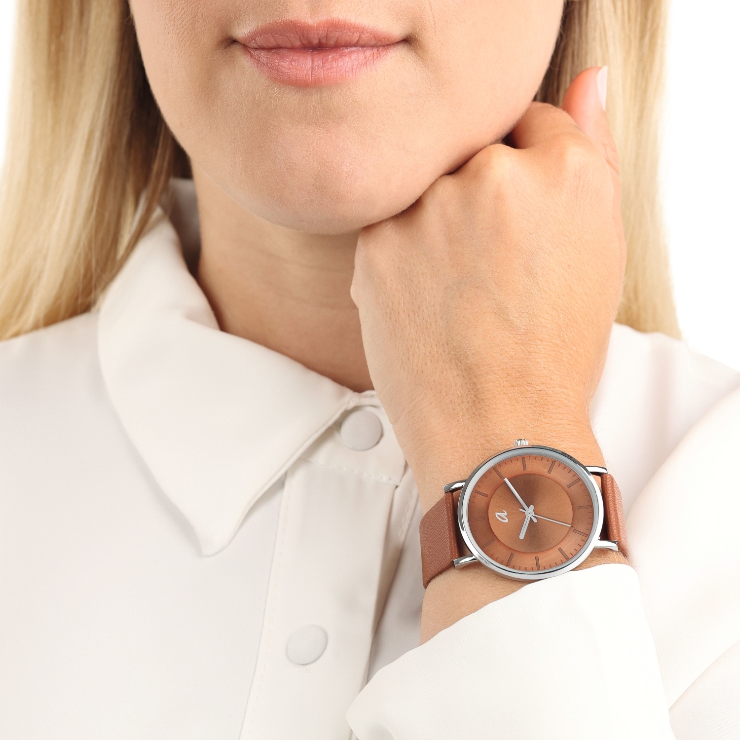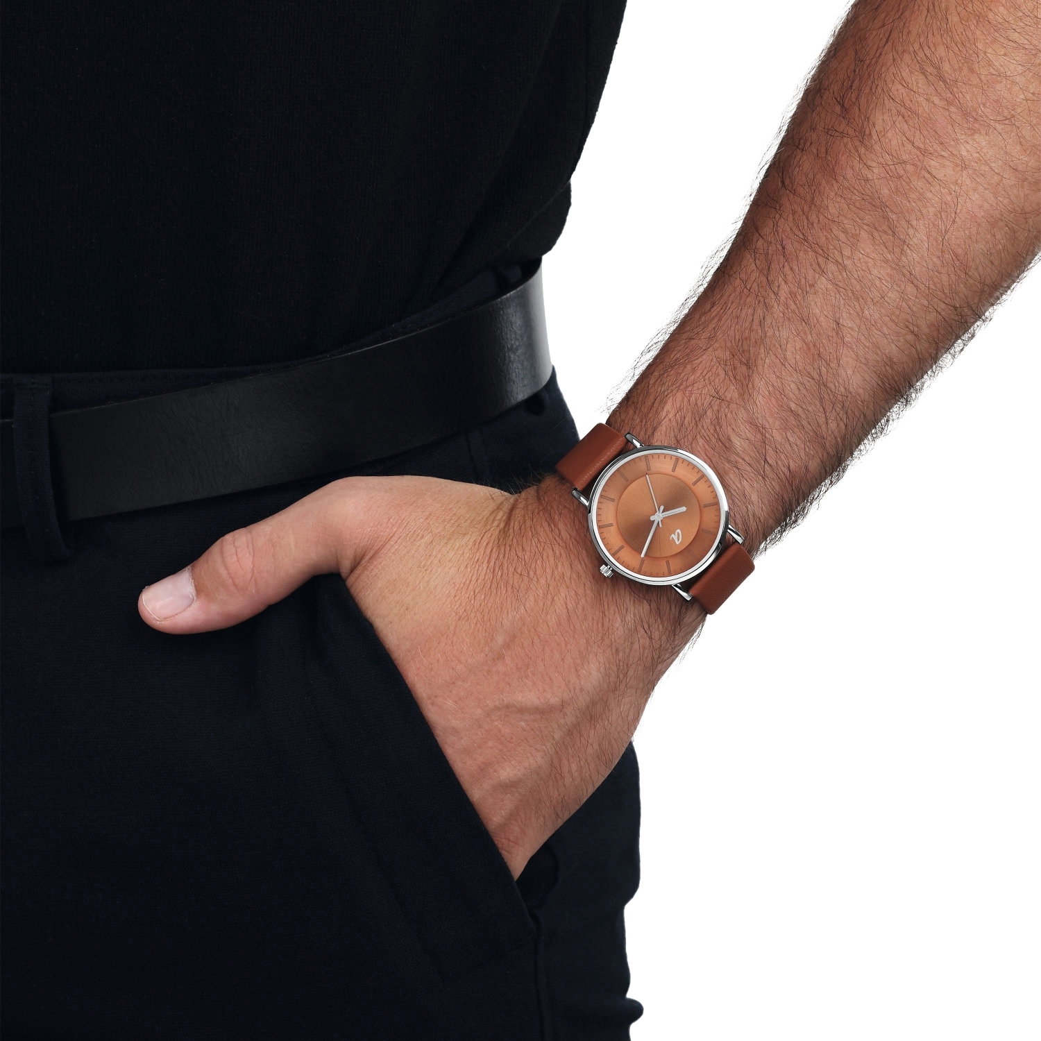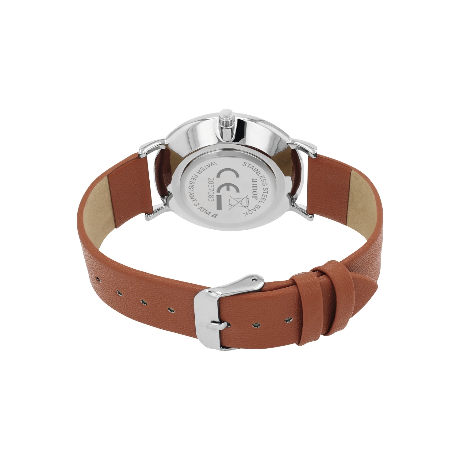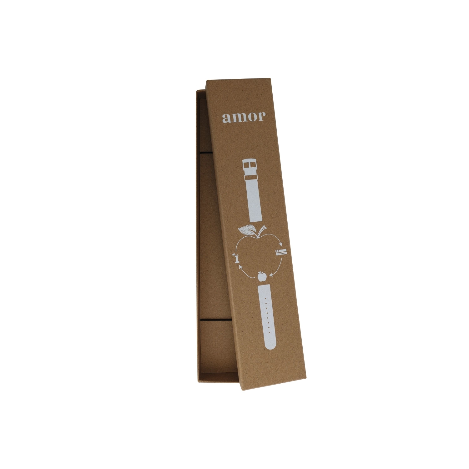 Elegante Armbanduhr für Damen und Herren im minimalistischen Stil der Marke Amor. Dieser Zeitmesser besteht aus Edelstahl, das mit IP Beschichtung veredelt wurde. Das hochwertig verarbeitete Armband aus tierfreiem Apfelleder harmoniert perfekt mit dem glänzenden Gehäuse. Besonders toll für Mensch und Tier: das 100% vegane Leder. Apfelleder wird aus Apfelresten (Trester) hergestellt. Apfelleder hat ähnliche Eigenschaften wie tierisches Leder, ist jedoch umweltfreundlicher. Es ist strapazierfähig, langlebig und hat eine angenehme Haptik. Zudem ist Apfelleder biologisch abbaubar. Das Armband ist zwischen 13+6 cm längenverstellbar und lässt sich durch einen klassischen Dornverschluss einfach verstellen. Im Stil der Unisex Uhr ist das Ziffernblatt ebenfalls im minimalistischen Stil gehalten und durch das robuste Mineralglas sicher geschützt. Das Accessoire kommt in einer passenden Verpackung aus umweltfreundlichen Materialien.
