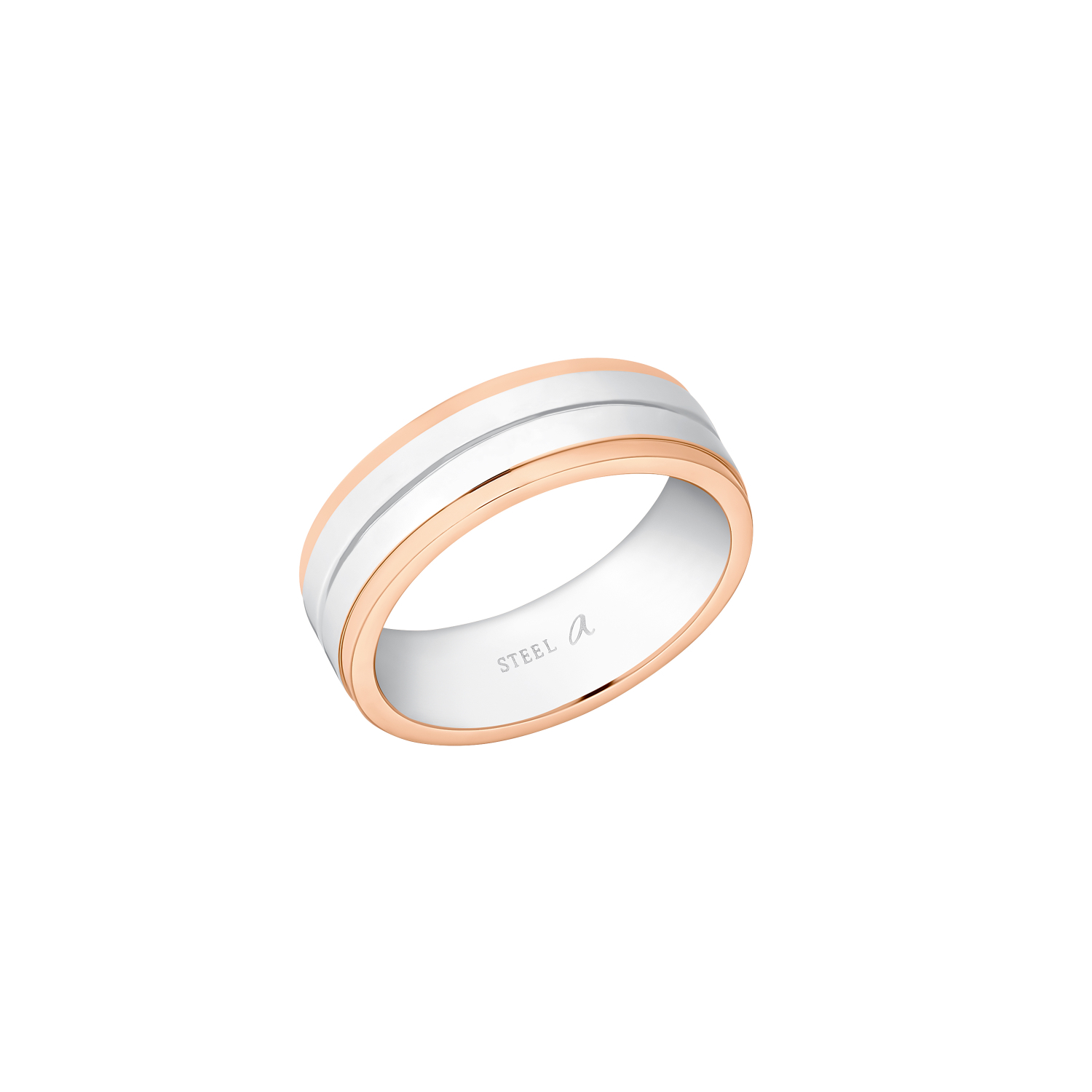 - Der Ring Edelstahl für Damen präsentiert sich im bicoloren Look