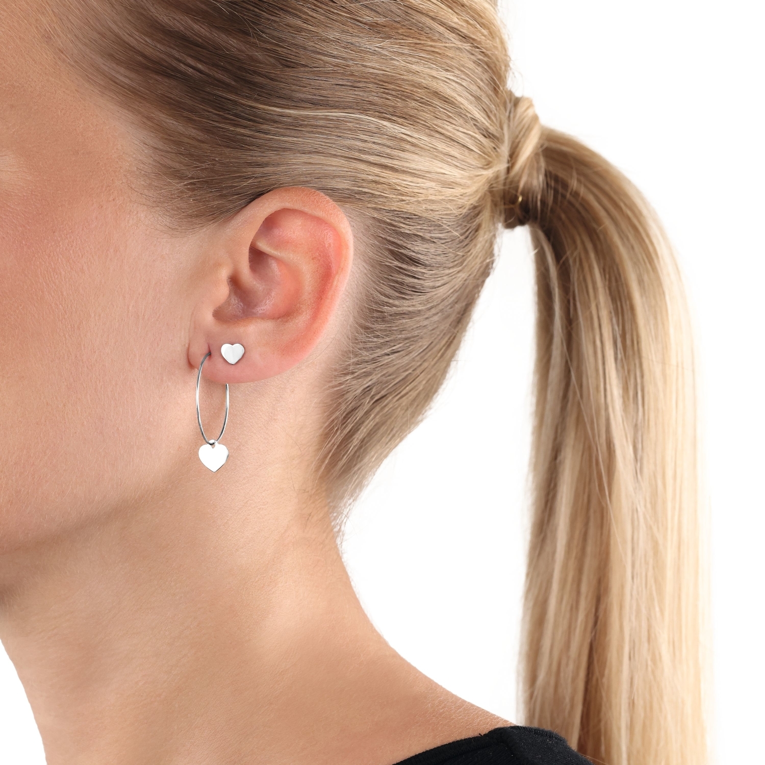 - Das zweiteilige Set besteht aus süßen Basic Ohrsteckern in Herzform sowie Creolen (Ø ca. 2,5 cm) mit Herzanhängern