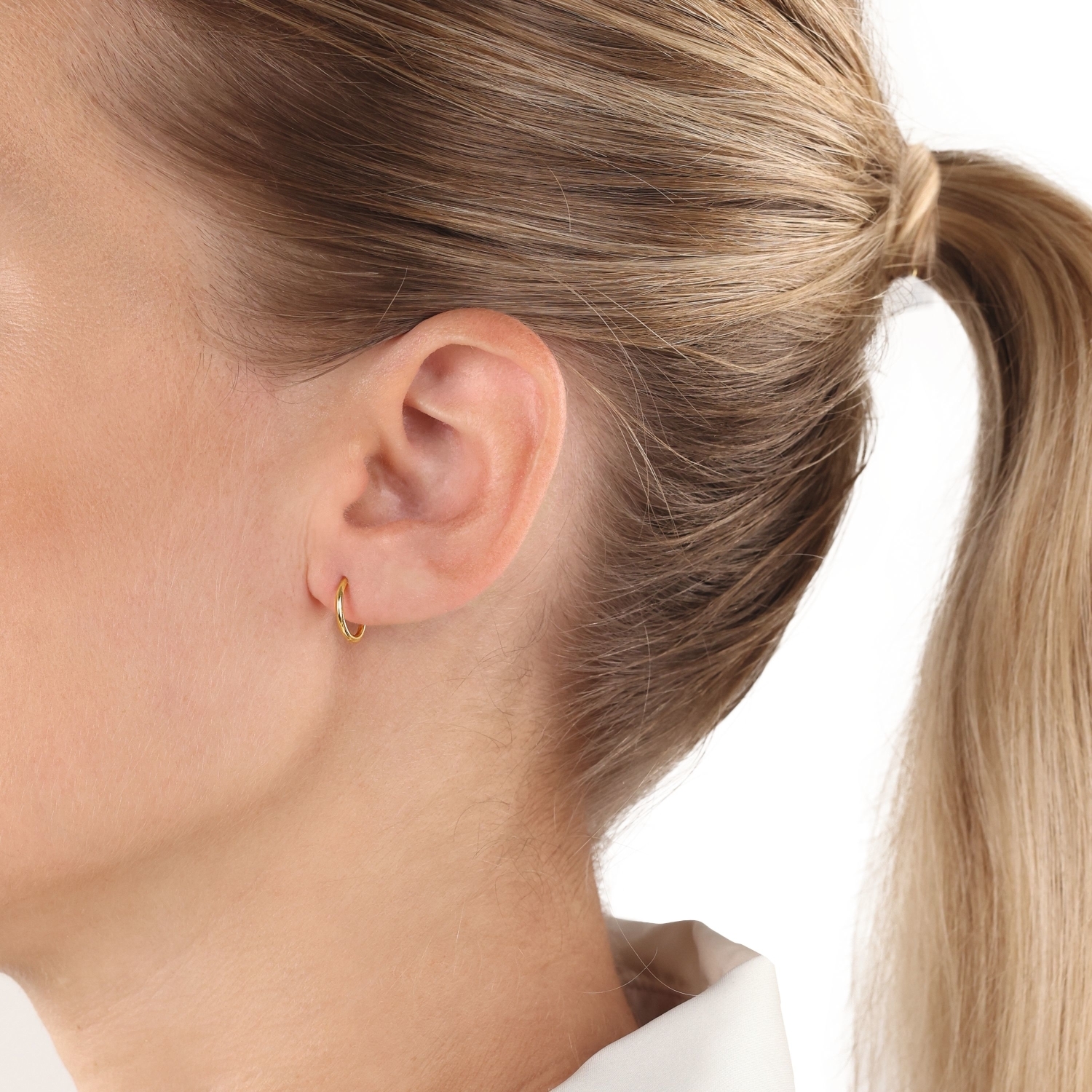 Klassischer Ohrring für Damen und Herren von Amor. Diese einzelne Single-Creole für jedes Geschlecht wurde aus glänzendem 375 Gelbgold gefertigt. Der Ohrring eignet sich für jedes Outfit und begleitet dich in jeder Lebenslage. Der 10 mm kleine Ohrschmuck kann als Einzelstück getragen werden oder mit weiteren Ohrringe kombiniert werden. Die Creole aus Echtgold bietet sich besonders gut für den Ear Party Style an, bei dem mehrere unterschiedliche Ohrringe miteinander kombiniert werden. Die Echtschmuck-Creole kann sowohl von Frauen sowie Männern getragen werden. Kombiniere den Ohrring aus 375 Gold außerdem mit weiteren Schmuckstücken wie Halskette und Armband und erschaffe deinen persönlichen Look. Darüber hinaus eignet sich der Single-Ohrring perfekt als dezentes Geschenk, dank der passenden Schmuckbox, in der die Creole kommt.