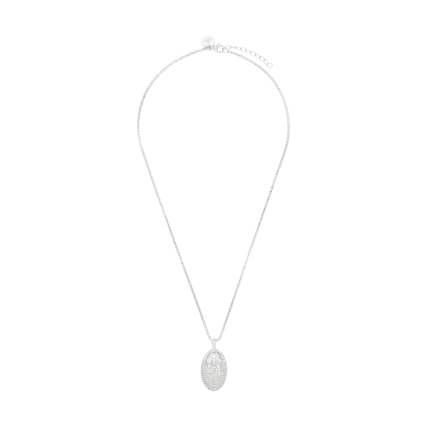 - Viele strahlenden Zirkonia (synth.) Schmucksteine zieren den ovalförmigen Anhänger