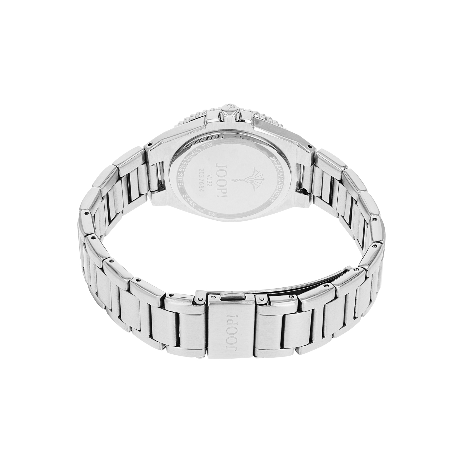 Ein luxuriöses Design charakterisiert diese luxuriöse Damenuhr der Marke JOOP! aus. Das klassische Ziffernblatt mit Logo-Schriftzug und Datumsanzeige wird durch robustes Mineralglas geschützt. Die Lünette mit arabischen Zahlen unterstreicht die stilvolle Aufmachung. Funktional überzeugt das Schmuckstück mit einem analogen Seiko-Quarzuhrwerk, Sekundenanzeiger und klassischer Kippfaltschließe mit Drücker. Das Armband lässt sich zwischen 12 und 18 cm Länge individuell verstellen.