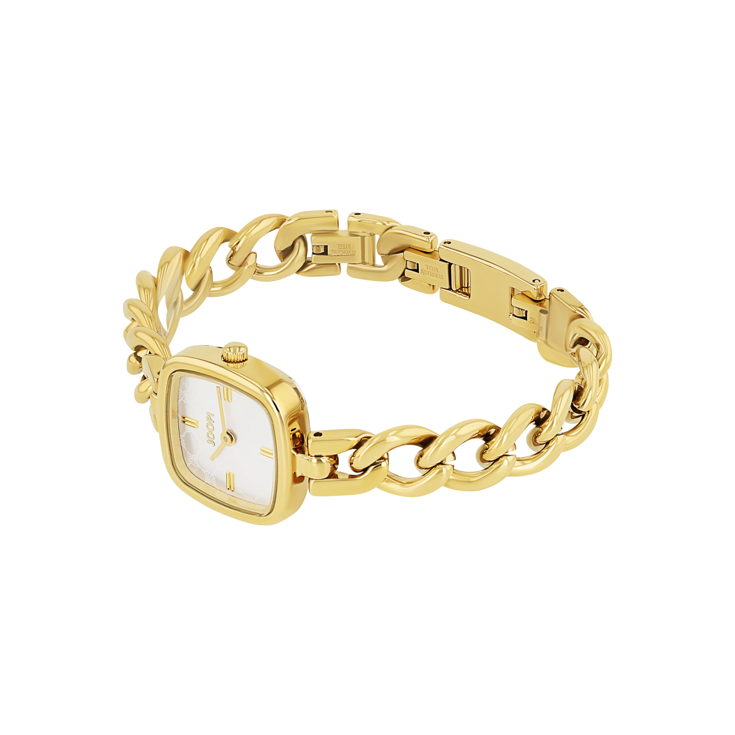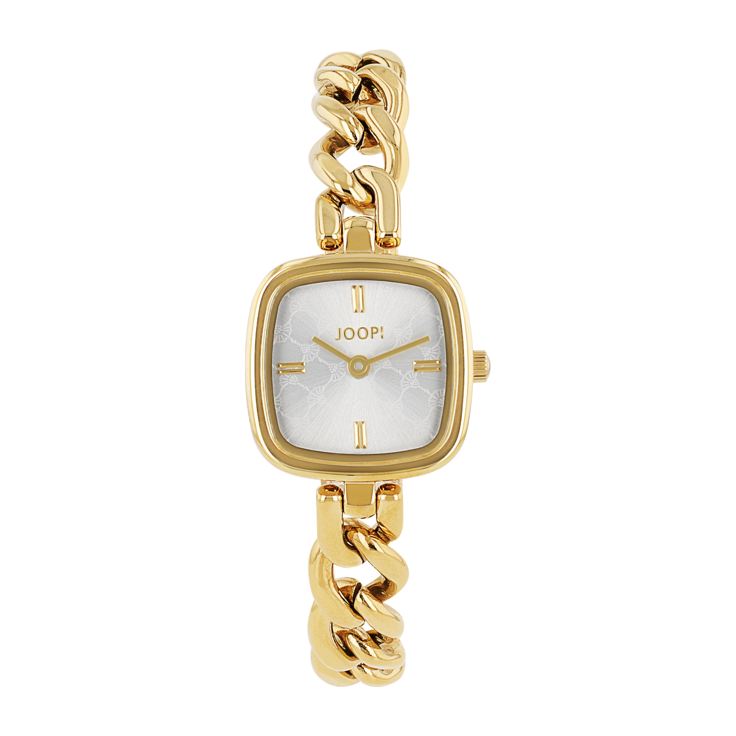Elegant und hochwertig: diese Uhr für Damen vereint edles Design mit herausragender Qualität. Uhren der Marke JOOP! stehen für ein präzises Uhrwerk, Innovation, moderne Designs und einen stilsicheren Auftritt. Das glänzende Gehäuse ist rechteckig, mit einem Ziffernblatt in Allover Rapport. Das Uhrengehäuse besteht aus Edelstahl, das Armband wurde aus robustem Edelstahl gefertigt. Der Gehäusedurchmesser beträgt ca. 21 mm. Diese Uhr überzeugt außerdem durch das besonders robuste Mineralglas und das Citizen Miyota Uhrwerk, das für die präzise Zeitangabe sorgt. Das Armband hat eine Gesamtlänge von 13+3,5 cm und lässt sich individuell an das Handgelenk anpassen. Der praktische Juwelierverschluss sorgt für eine einfache Handhabung. Eine Wasserdichte bis auf 3 bar rundet das Design ab. Die Uhr ist somit spritzwassergeschützt. Perfekt verpackt und somit auch ideal zum Verschenken geeignet: Diese Uhr ist nicht nur ein praktischer Begleiter, sondern auch ein stilvolles Accessoire. Kombinieren Sie sie mit unserer vielfältigen JOOP! Schmuck Kollektion für einen individuellen Look.