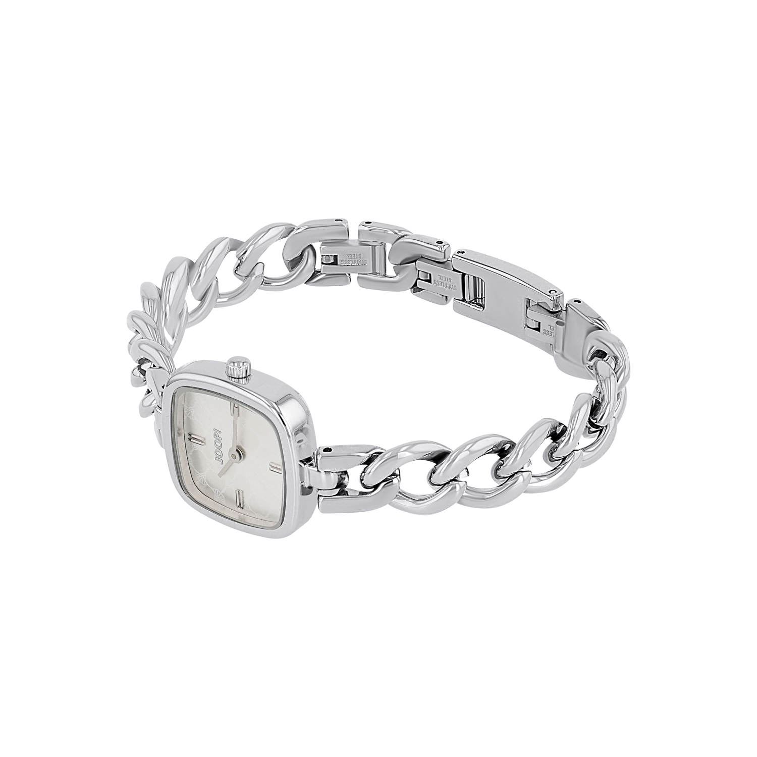 Elegant und hochwertig: diese Uhr für Damen vereint edles Design mit herausragender Qualität. Uhren der Marke JOOP! stehen für ein präzises Uhrwerk, Innovation, moderne Designs und einen stilsicheren Auftritt. Das glänzende Gehäuse ist rechteckig, mit einem Ziffernblatt in Allover Rapport. Das Uhrengehäuse besteht aus Edelstahl, das Armband wurde aus robustem Edelstahl gefertigt. Der Gehäusedurchmesser beträgt ca. 21 mm. Diese Uhr überzeugt außerdem durch das besonders robuste Mineralglas und das Citizen Miyota Uhrwerk, das für die präzise Zeitangabe sorgt. Das Armband hat eine Gesamtlänge von 13+3,5 cm und lässt sich individuell an das Handgelenk anpassen. Der praktische Juwelierverschluss sorgt für eine einfache Handhabung. Eine Wasserdichte bis auf 3 bar rundet das Design ab. Die Uhr ist somit spritzwassergeschützt. Perfekt verpackt und somit auch ideal zum Verschenken geeignet: Diese Uhr ist nicht nur ein praktischer Begleiter, sondern auch ein stilvolles Accessoire. Kombinieren Sie sie mit unserer vielfältigen JOOP! Schmuck Kollektion für einen individuellen Look.