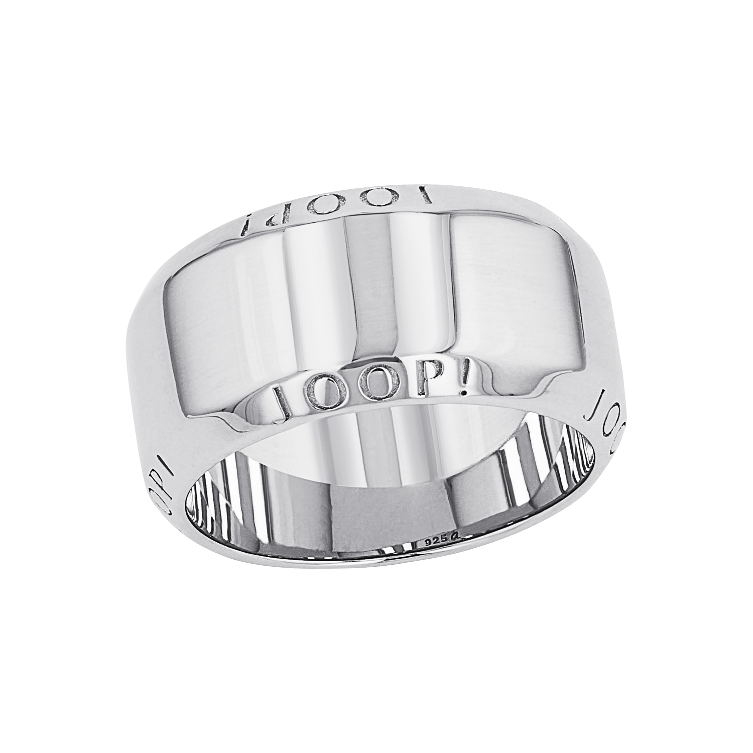 Ring für Damen. Aus hochwertigem 925 Sterling Silber gefertigt, besticht dieser Ring für Damen der Marke JOOP! durch sein klassisches Design. Die glatte Oberfläche wird durch den markentypischen Logo-Schriftzug akzentuiert, was ihn zu einem eleganten Accessoire macht. Dabei hat das Schmuckstück eine Breite von 10 mm - ein stilvolles Statement. Die Innenseite des Rings kann individuell graviert werden. Die JOOP! Schmuckkreation wird in einer ansprechenden Schatulle geliefert, die sich hervorragend zum Aufbewahren sowie Verschenken eignet.