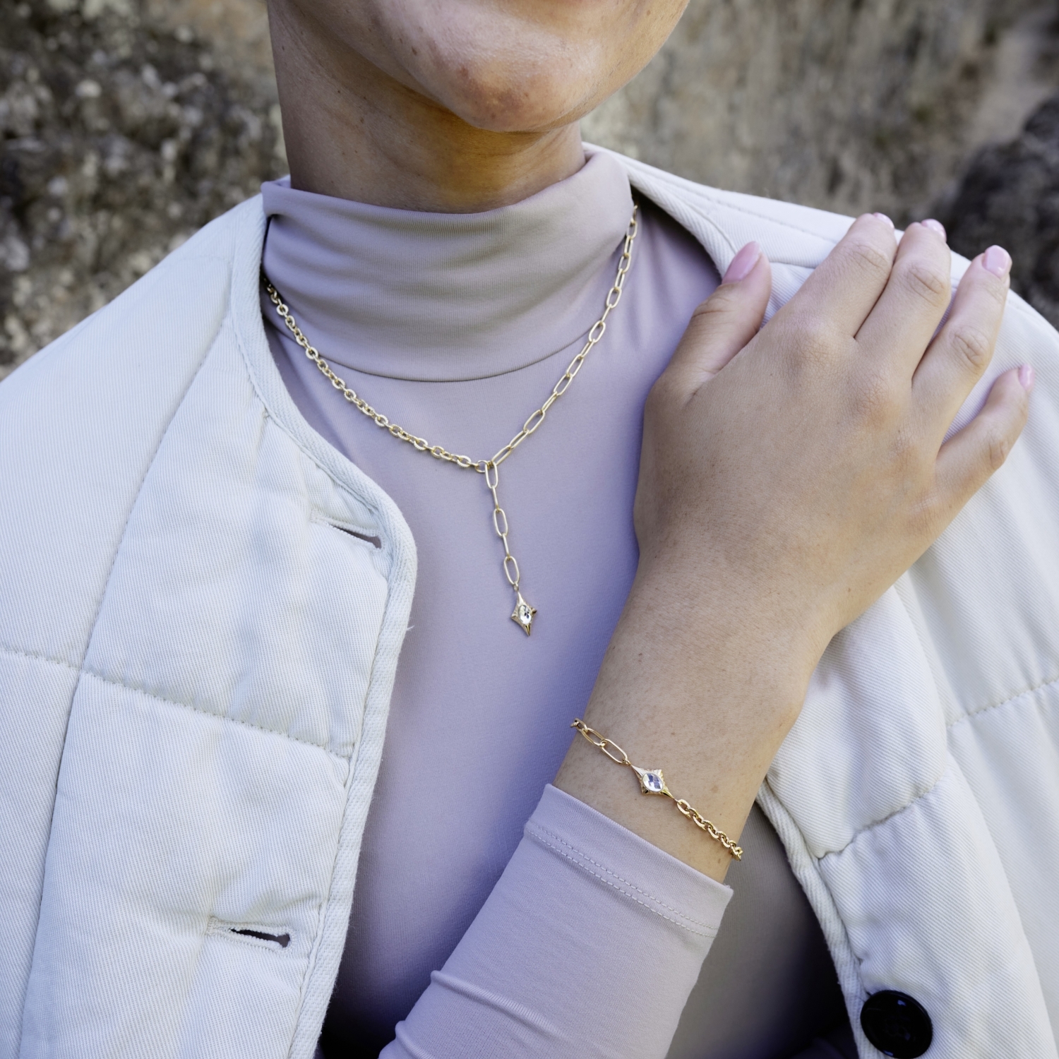 - Die Armkette besteht aus hochwertigem Edelstahl und ist mit Zirkonia-Steinen besetzt