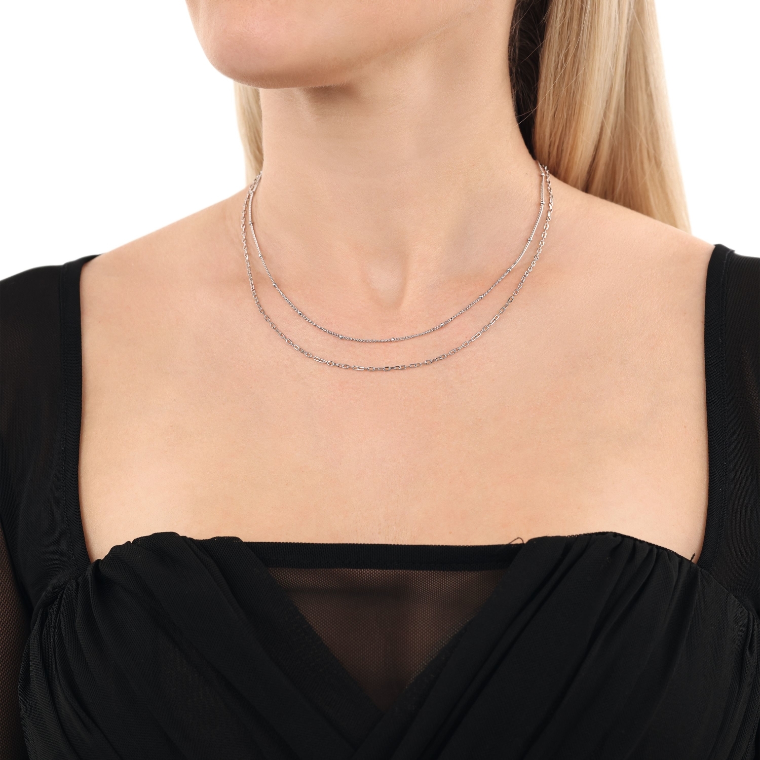 Classy und modern: mit der Halskette von NOELANI setzt du stylishe Akzente. Der Schmuck der Marke NOELANI vereint junge Designs mit hochwertiger Verarbeitung. Die zweireihige Kette besteht aus hochwertigem 925 Sterling Silber, bei einer Länge von 39/42+5 cm und ist in einer klassischen Fantasiegliederung gefertigt. Ein praktischer Karabinerverschluss sorgt für ein einfaches An- und Ablegen. Dein Schmuckstück wird in einer passenden Verpackung geliefert, die sich ideal zum Aufbewahren oder auch Verschenken eignet.