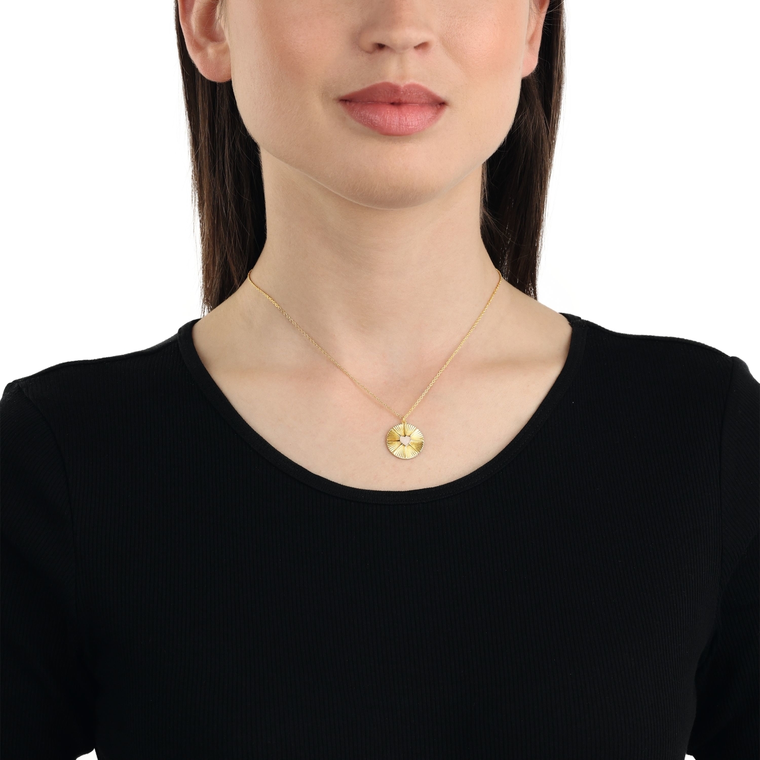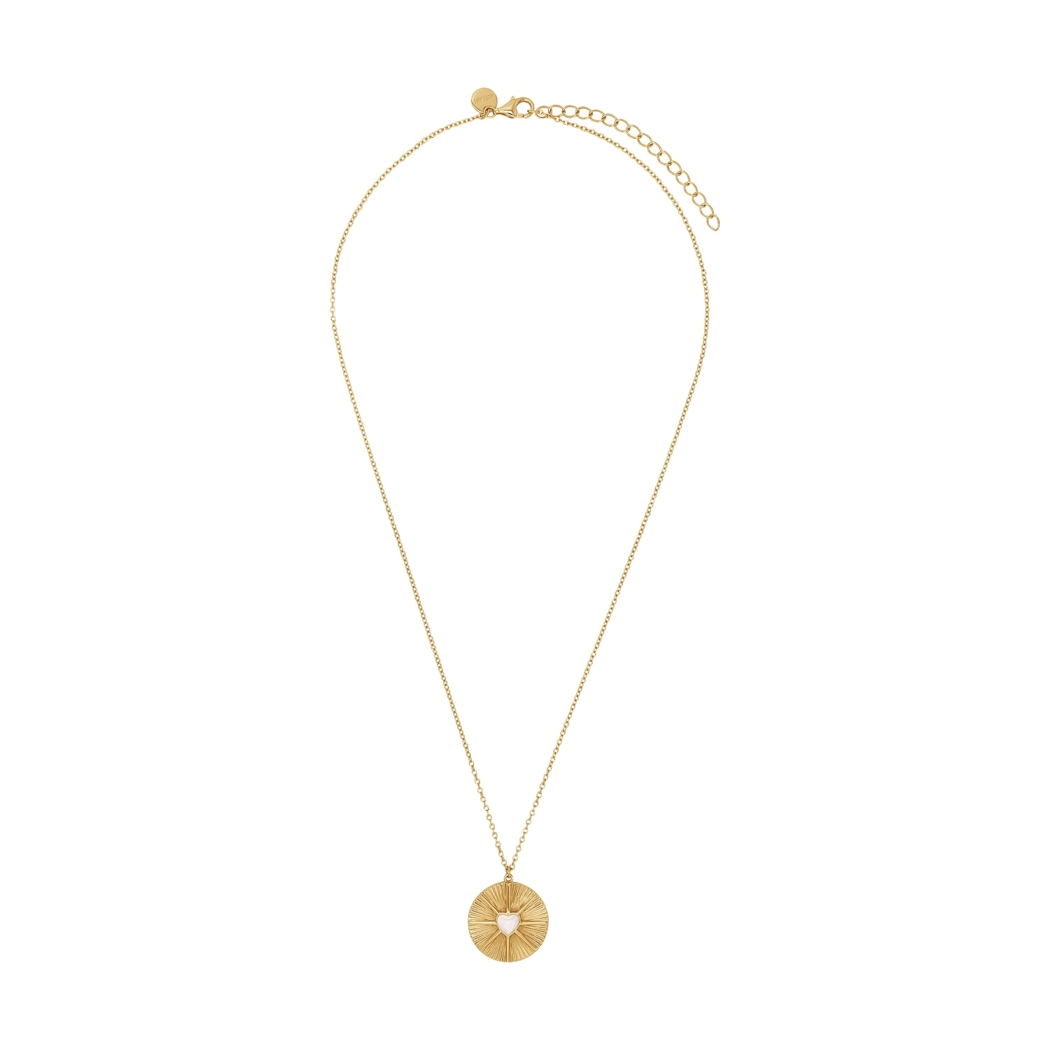 - Noelani Damen Halskette mit Coin-Anhänger und Herz aus beigefarbener Emaille
