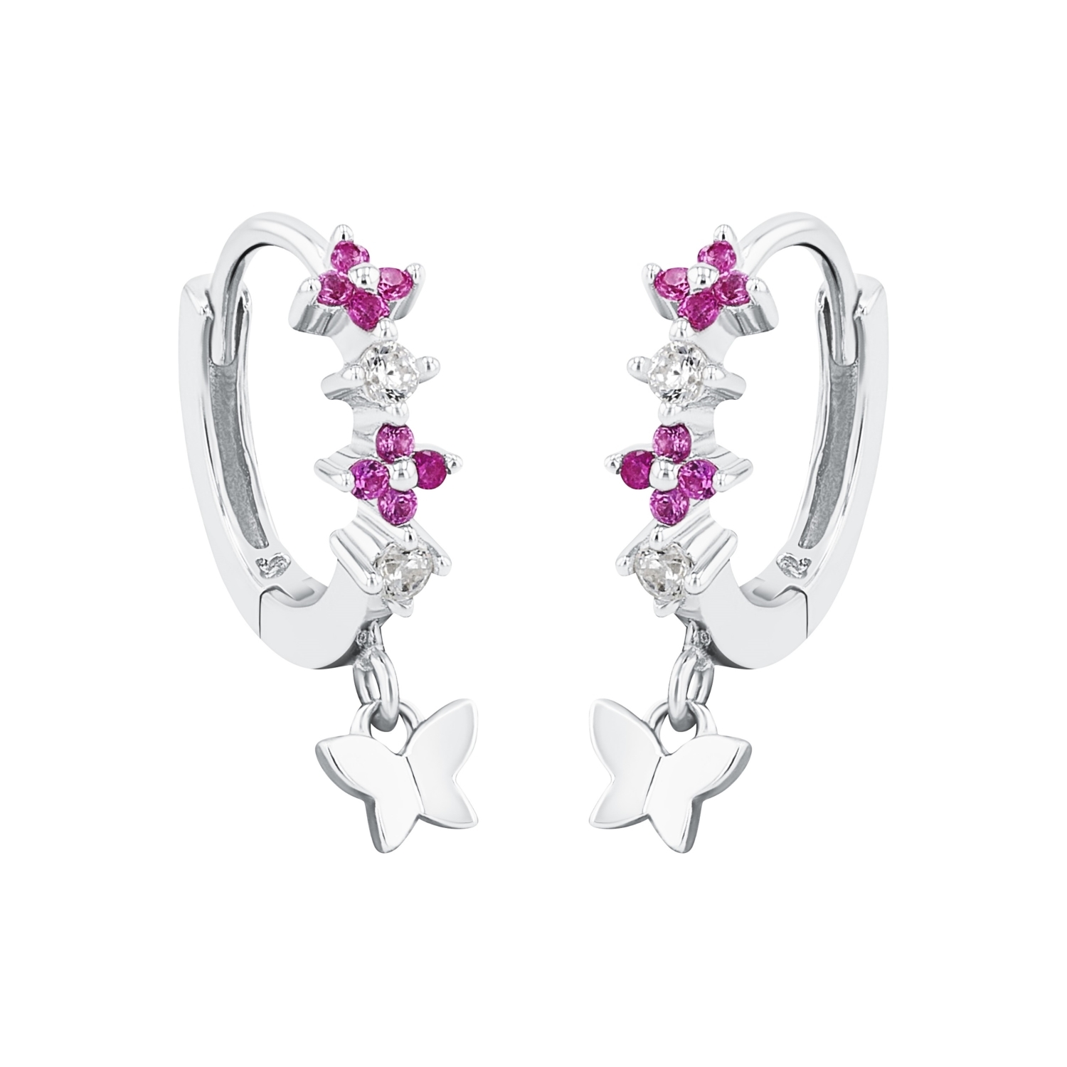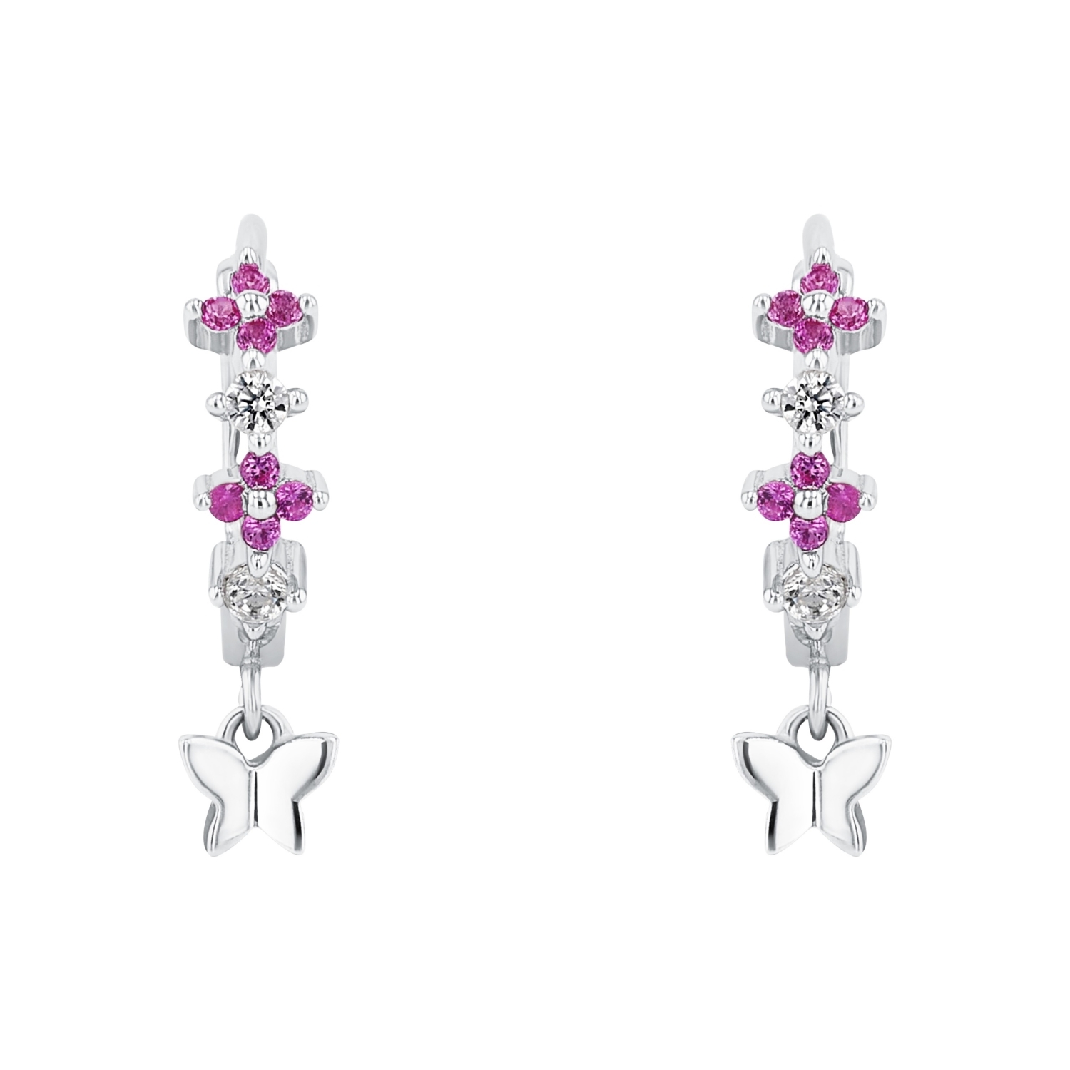 - Süße Mädchen Creolen mit Schmetterlings-Anhänger und Zirkonia (synth.)