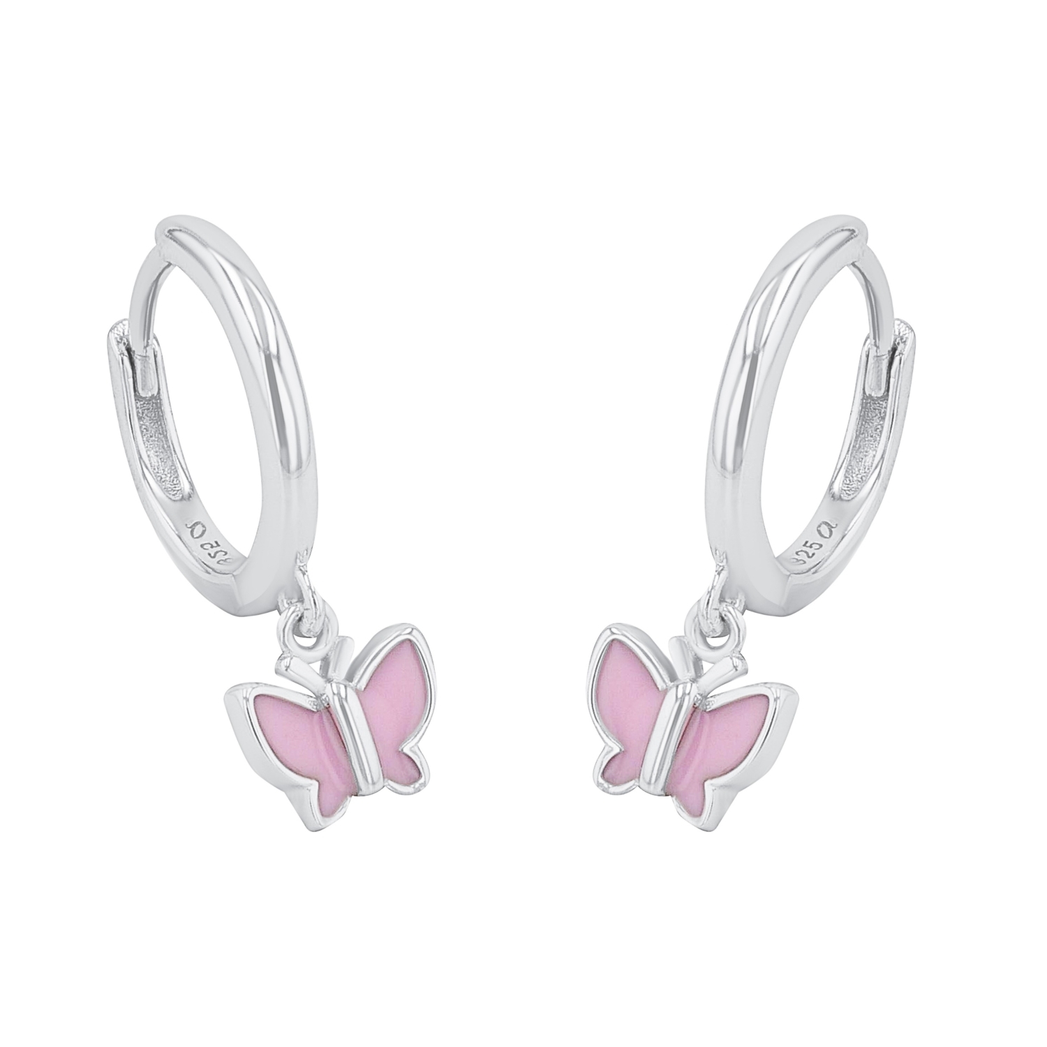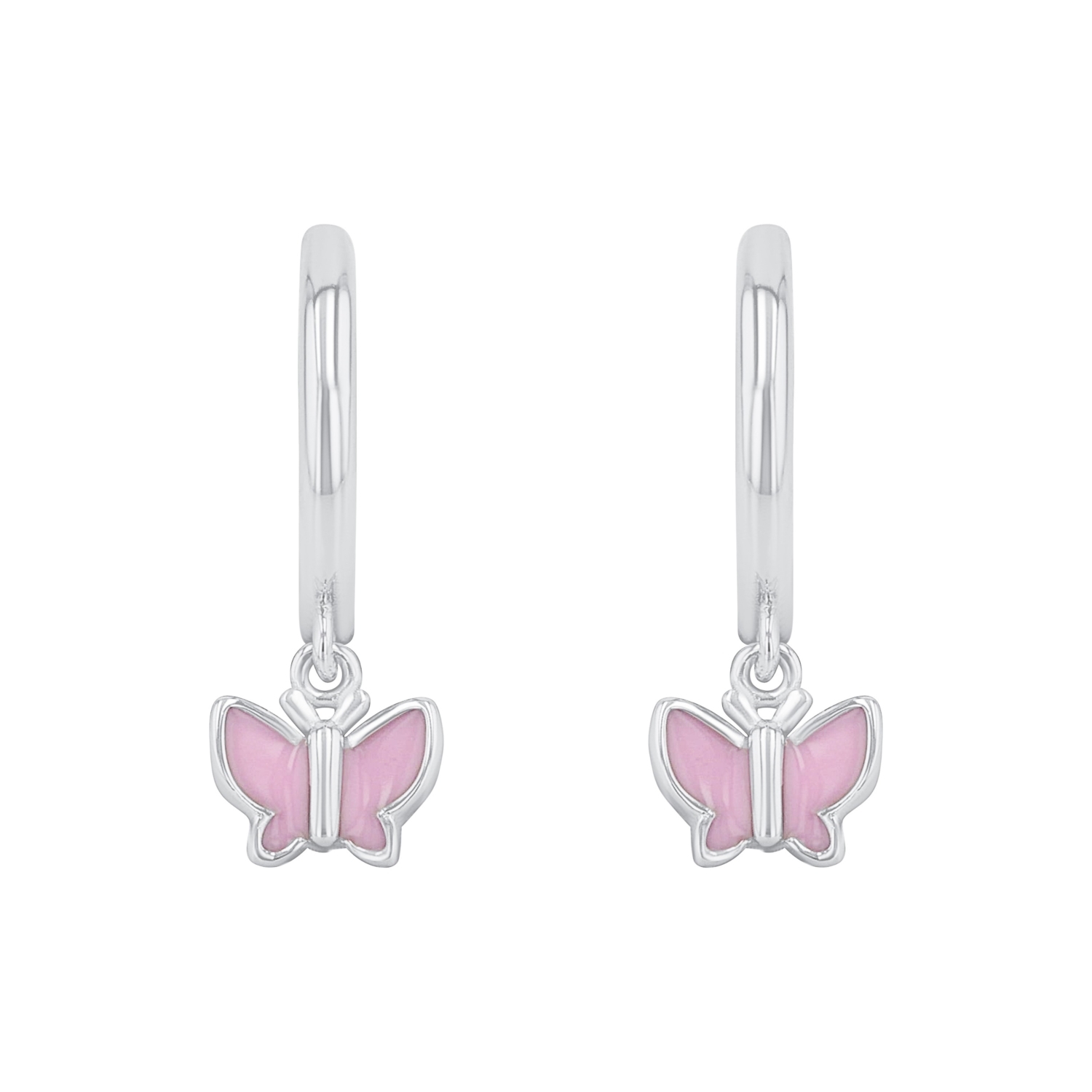 Wunderschöne Ohrringe mit Schmetterling-Anhänger für Mädchen von Prinzessin Lillifee. Diese süßen Creolen der Marke Prinzessin Lillifee haben einen Schmetterling als Anhänger und wurden aus hochwertigem 925 Sterling Silber hergestellt. So wird deine kleine Prinzessin noch länger Freude an dem neuen Accessoire haben. Die Flügel des süßen Motivs wurden mit einer Emaille veredelt. Der Ohrschmuck für Mädchen hat eine Gesamtlänge von 18 mm. Für den sicheren Halt beim Tragen sowie die einfache Handhabe sorgt der praktische Scharnierverschluss.