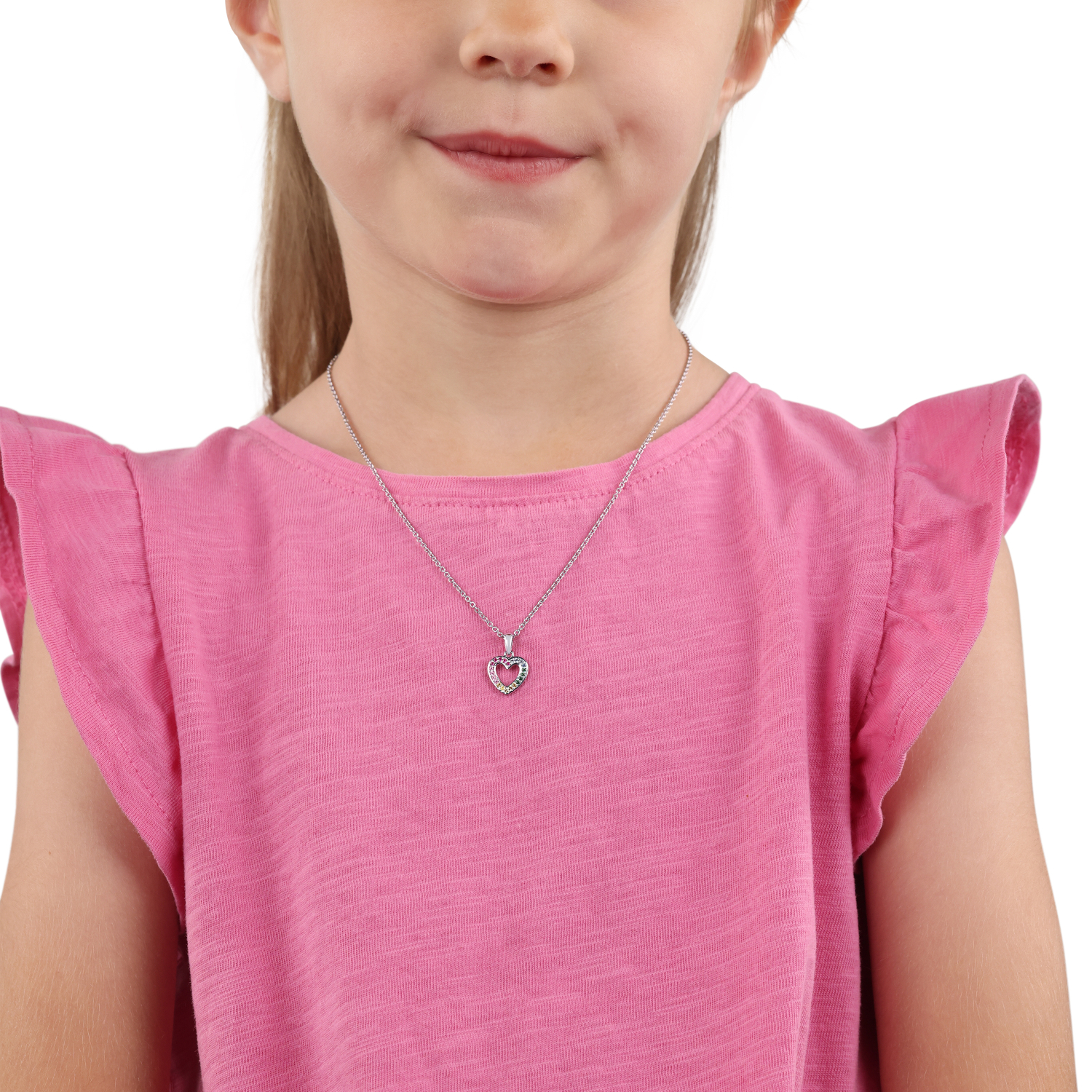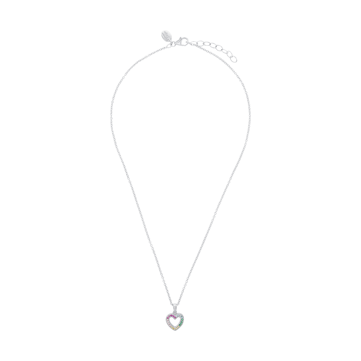 - Das Herzmotiv ist mit vielen funkelnden Zirkonia besetzt in Rainbow Farben