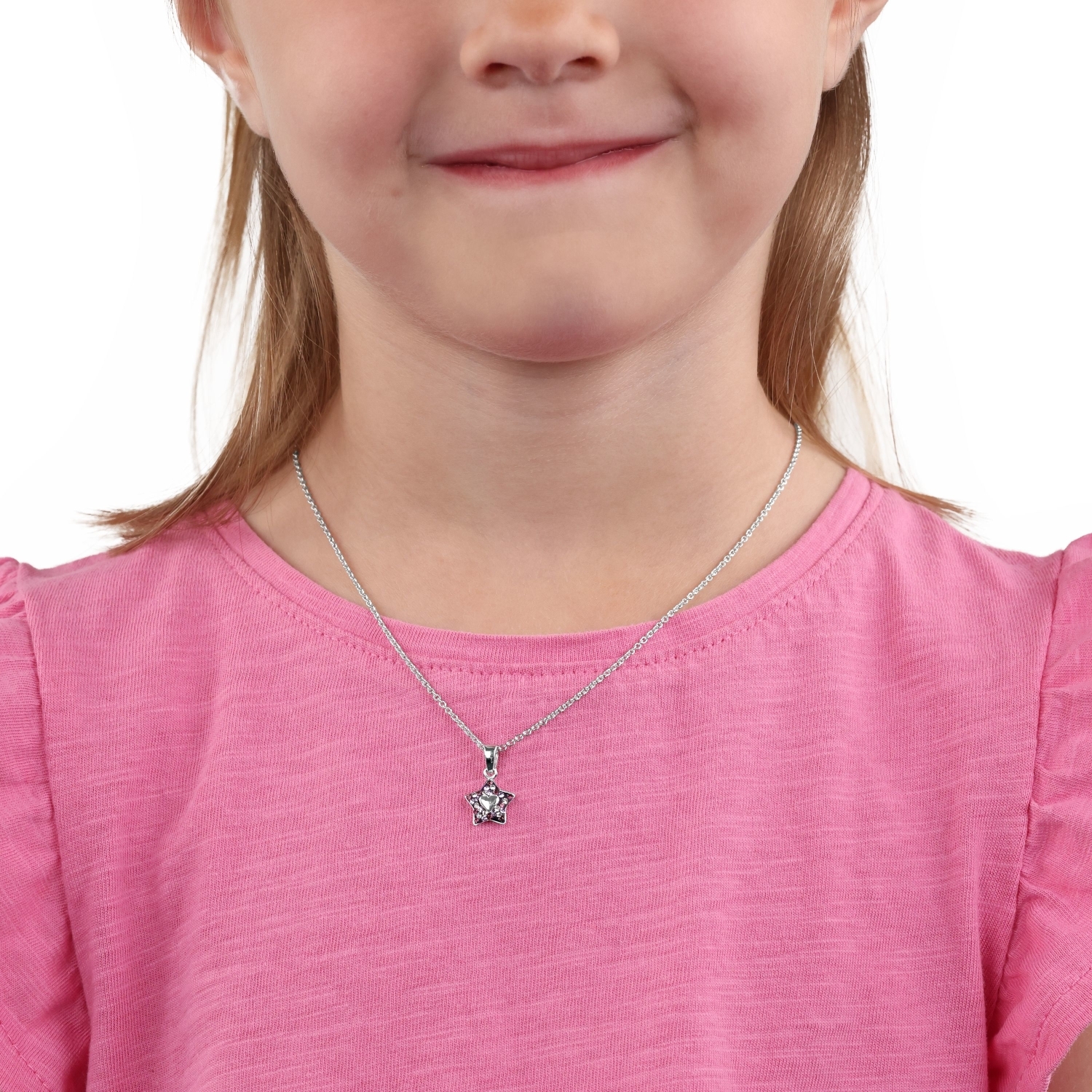 Halskette für Mädchen von Prinzessin Lillifee. Diese traumhaft schöne Halskette für Kinder von der bekannten Marke Prinzessin Lillifee präsentiert sich mit tollem Stern-Motiv. Der Kinder-Halsschmuck wurde aus hochwertigem 925 Sterling Silber gefertigt. Somit kann deine kleine Prinzessin noch länger Freude an der neuen Halskette haben. Die Echtschmuck-Halskette Mädchen Silber hat eine Länge von 35 cm, kann jedoch bei Bedarf auf bis zu 38 cm verlängert werden. Somit passt sich die Mädchenhalskette bequem dem Hals an. Herzstück des Halsschmucks Mädchen ist der Kettenanhänger im Stern-Design. Verziert mit zahlreichen strahlenden Preciosa Steinen, bringt diese süße Halskette Silber 925 ein Lächeln in jedes Kindergesicht. Die Kinderkette mit Stern-Motiv kann mit weiteren Schmuckstücken kombiniert werden, so auch mit den passenden Ohrringen und Armband. Die Halskette Mädchen Silber Stern kommt in einer passenden, verspielten Schmuckbox und ist somit eine tolle Geschenkidee.