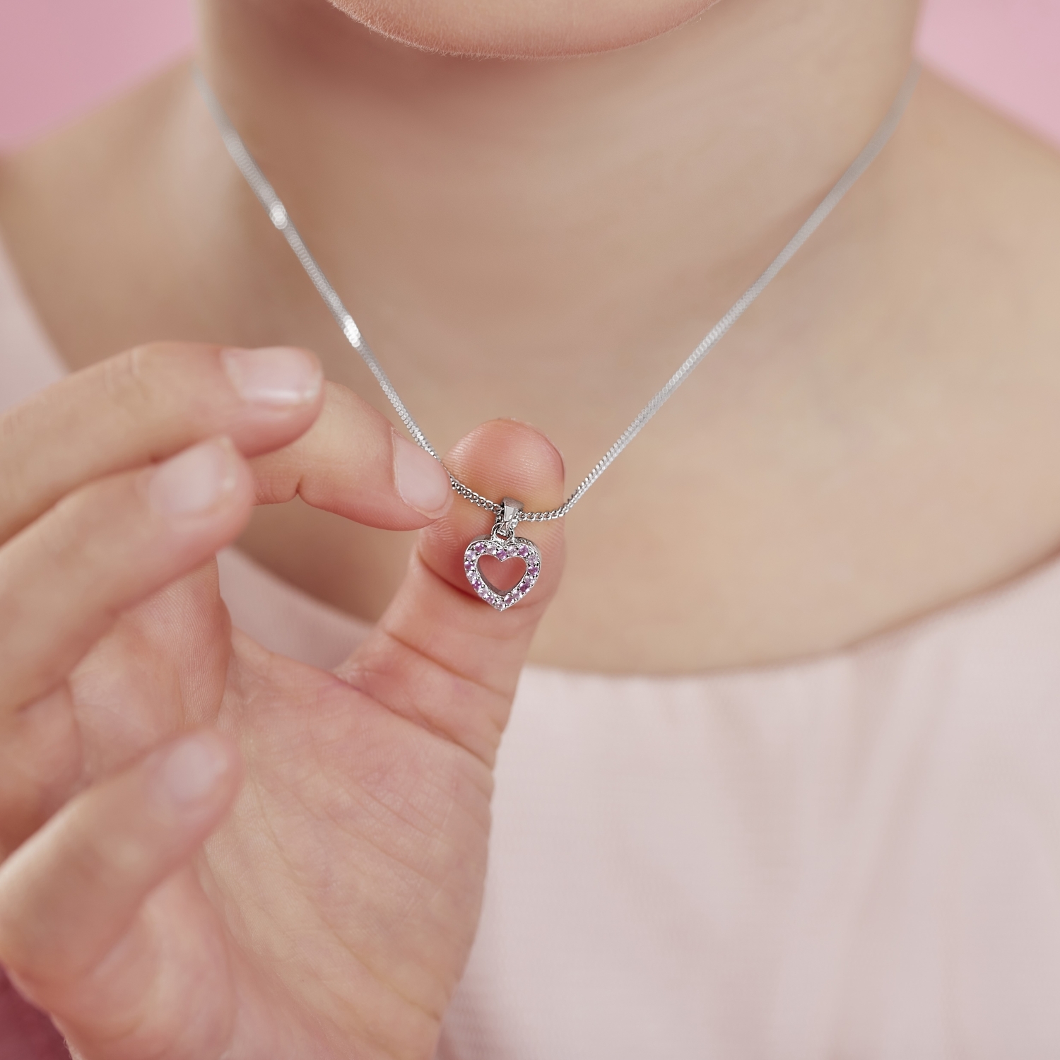 - Kinderhalskette mit Herz-Motiv aus glänzendem 925 Sterling Silber und (synth.) Zirkonia