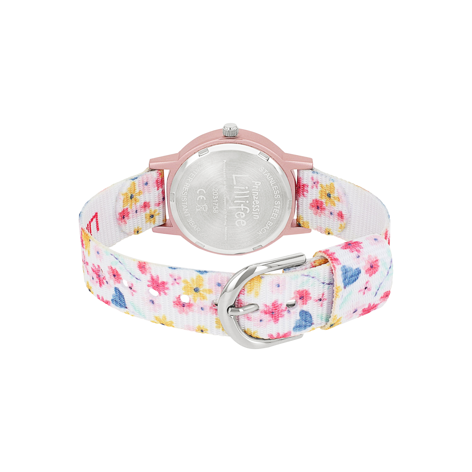- Mädchenuhr mit floralen Motiven und Lernziffernblatt aus Mineralglas