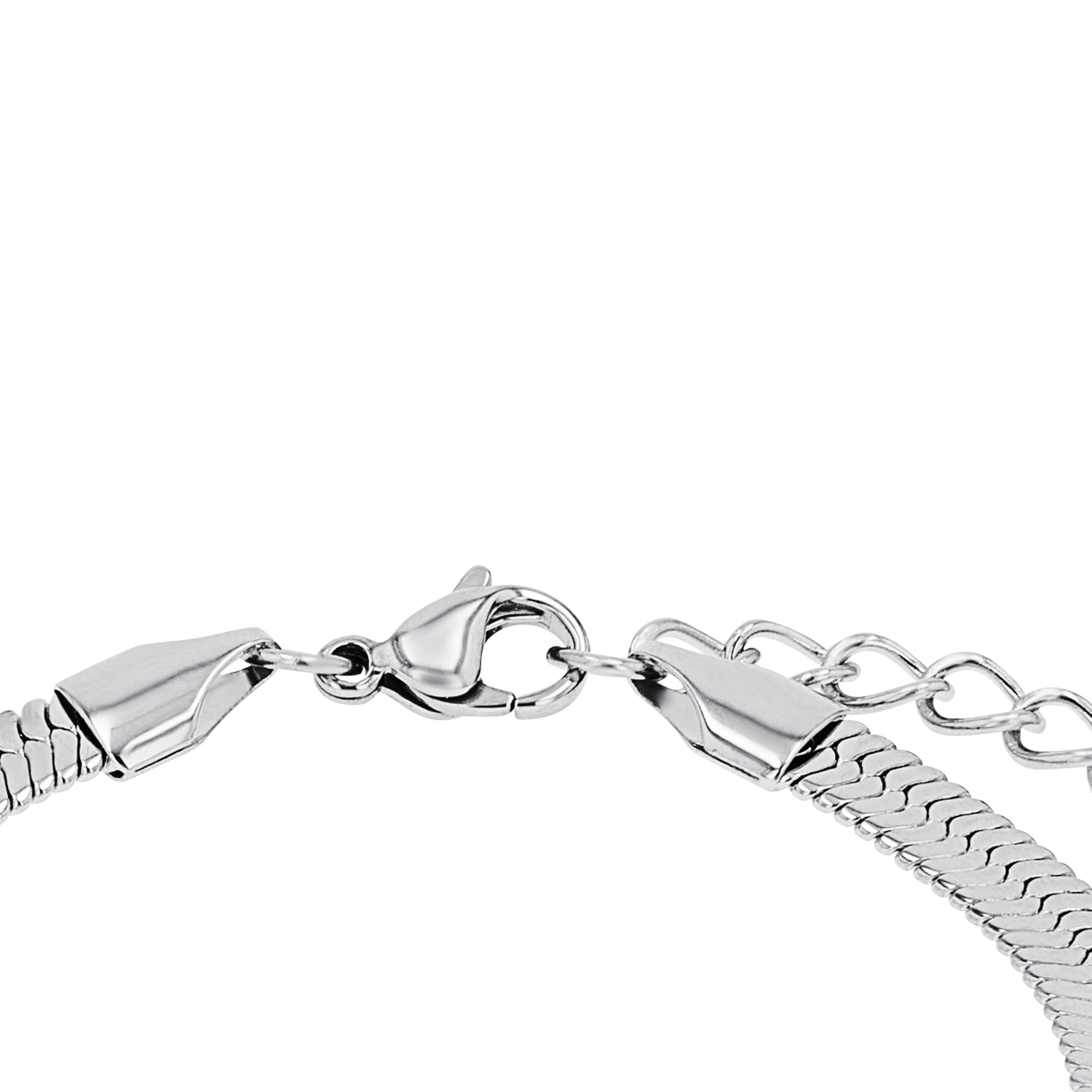 Damen Schlangen-Armband von s.Oliver. Mit dieser aussagekräftigen Frauen Armkette im angesagten Schlangenlook highlightest du deine Outfits gekonnt. Das Armband wurde aus hochwertigem Edelstahl hergestellt. Die Kette ist ca. 0,9 mm dick und mit einem Verlängerungskettchen von 17 bis 20 cm längenverstellbar. Ein Karabinerverschluss macht das Anlegen spielend leicht. Entdecke ergänzend eine matchy s.Oliver Uhr. Der Armschmuck kommt in einer passenden Schmuckbox - die perfekte Geschenkidee.