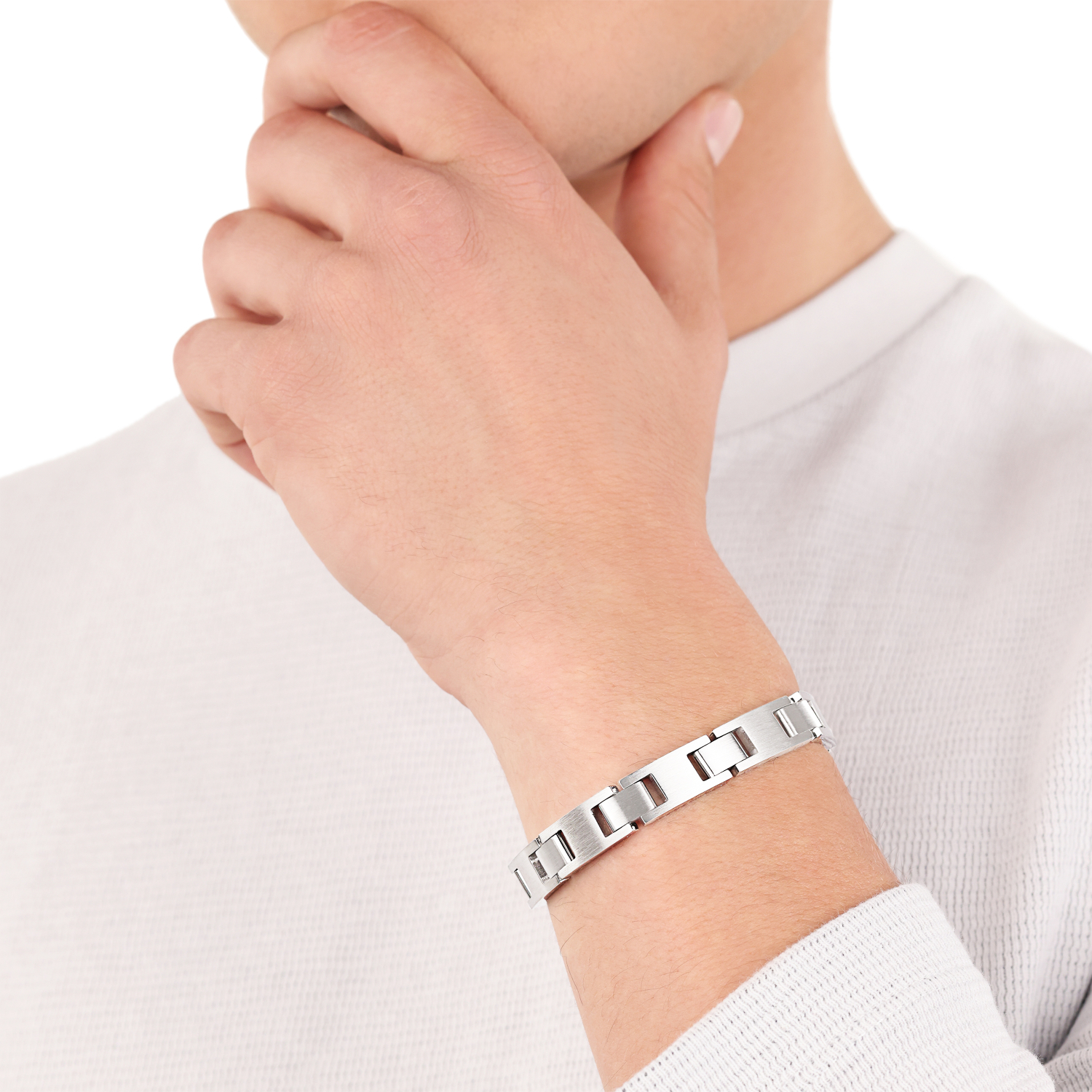 Massives Glieder-Armband für Herren von s.Oliver. Der Armschmuck in Fantasiegliederung ist aus hochwertigem Edelstahl in matt-glänzender Optik gefertigt. die Länge der Armkette ist individuell verstellbar, 17+4 cm, damit du den Schmuck für dich genau passend einstellen kannst. Durch den Klappverschluss ist ein müheloses An- und Ablegen möglich. Der Schmuck wird in einer passenden Box geliefert, hierin kann die Schmuckkreation ideal aufbewahrt und verschenkt werden.