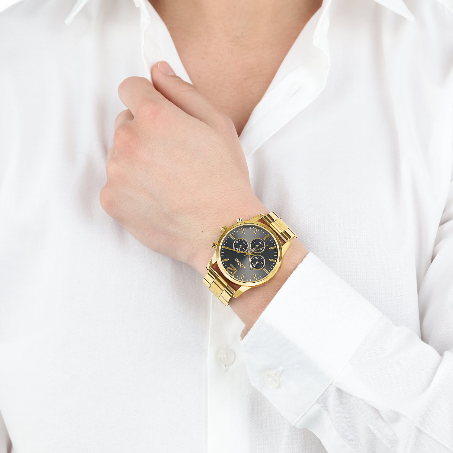 - Das Gehäuse wird durch eine IP Beschichtung veredelt, der Uhrendeckel und das Armband bestehen aus Edelstahl