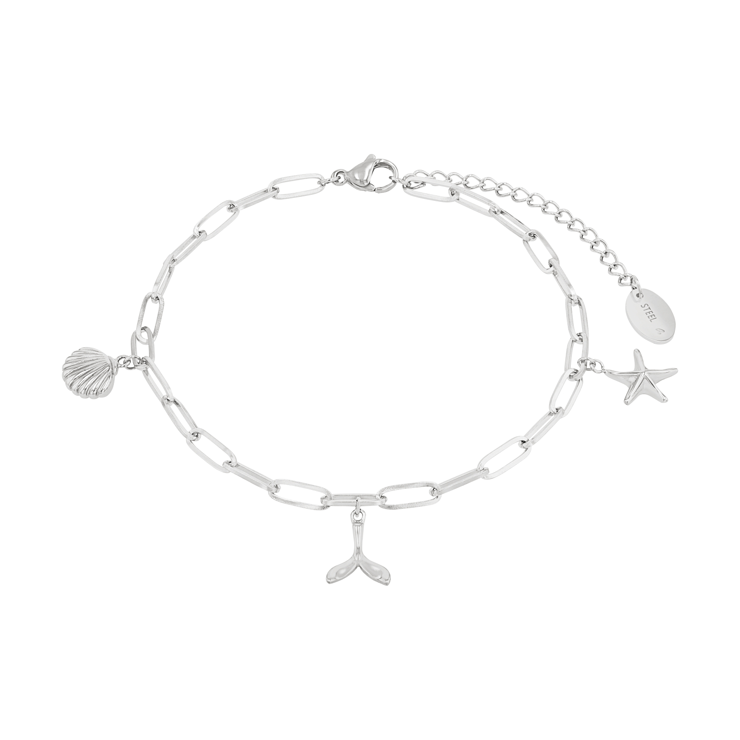 Trendy Damen-Fußkettchen von s.Oliver. Diese elegante Fußkette für Damen von der renommierten Marke s.Oliver wurde aus robustem, glänzendem Stainless Steel hergestellt. Das Accessoire ist der perfekte Begleiter in den warmen Sommermonaten oder dem verdienten Winterurlaub im Süden. Das Highlight des Fußkettchens sind die 3 unterschiedlichen Anhänger im maritimen Design. Ein Seestern, eine Walflosse und eine Muschel zieren deinen Knöchel und geben deinem Look das besondere Etwas. Oder entscheide dich für deinen ganzindividuellen Style. Der Echtschmuck von s.Oliver ist hierfür genau das Richtige. Trage deine Fußkette kombiniert mit sommerlicher Kleidung oder setze den Fußschmuck modisch in Sezen. Das praktische Verlängerungskettchen bietet dir viele Möglichkeiten. Es erlaubt dir, das Kettchen von 22 cm auf 27 cm zu verlängern. Der praktische Karabiner-Verschluss sorgt hierbei für den sicheren Halt. Das moderne Design und die detaillierte Verarbeitung der hochwertigen Materialien bietet dir das perfekte Accessoire! Dank der passenden Schmuckbox, die sich im Lieferumfang befindet, eignet sich das Fußkettchen sehr gut als Geschenk zum Geburtstag oder Jahrestag.