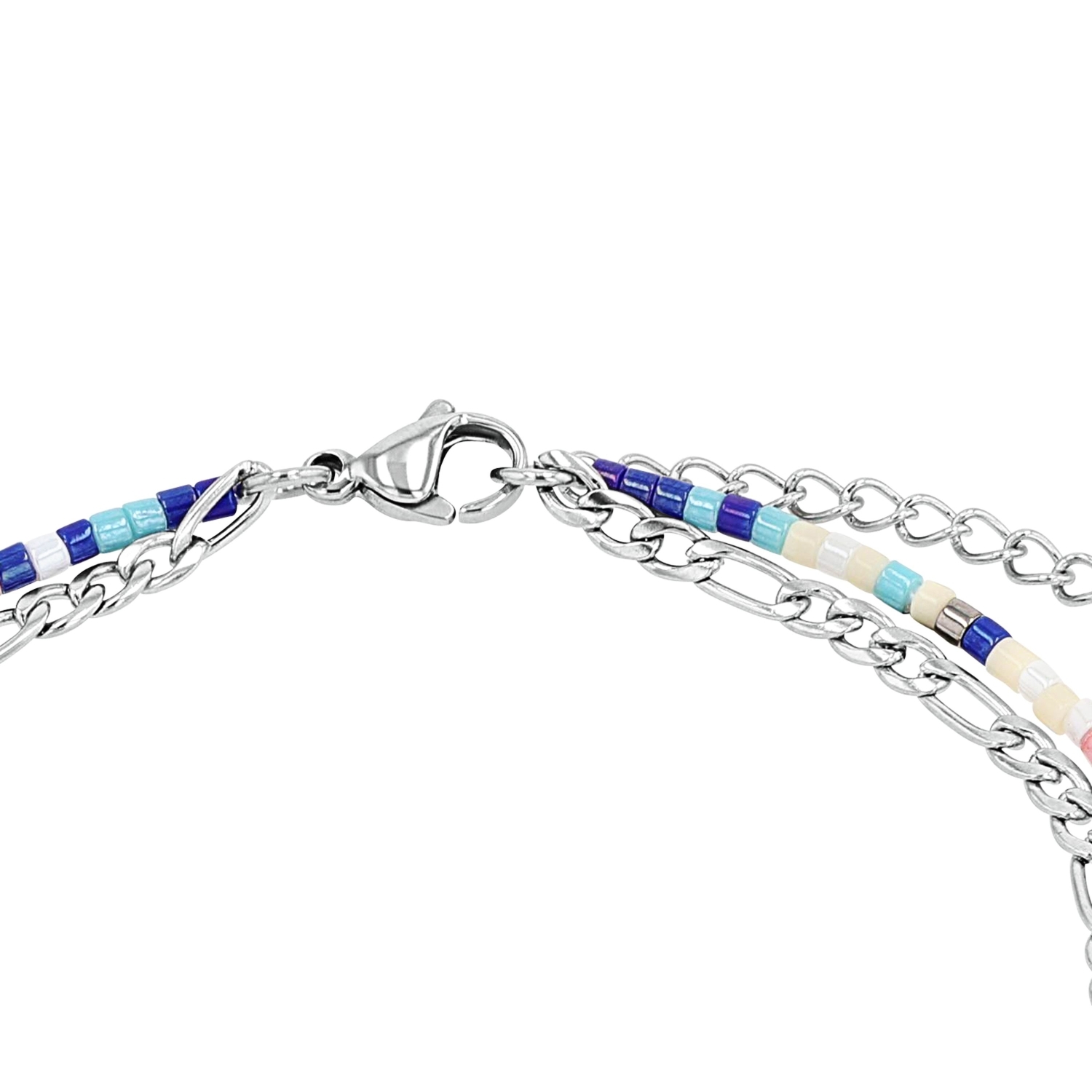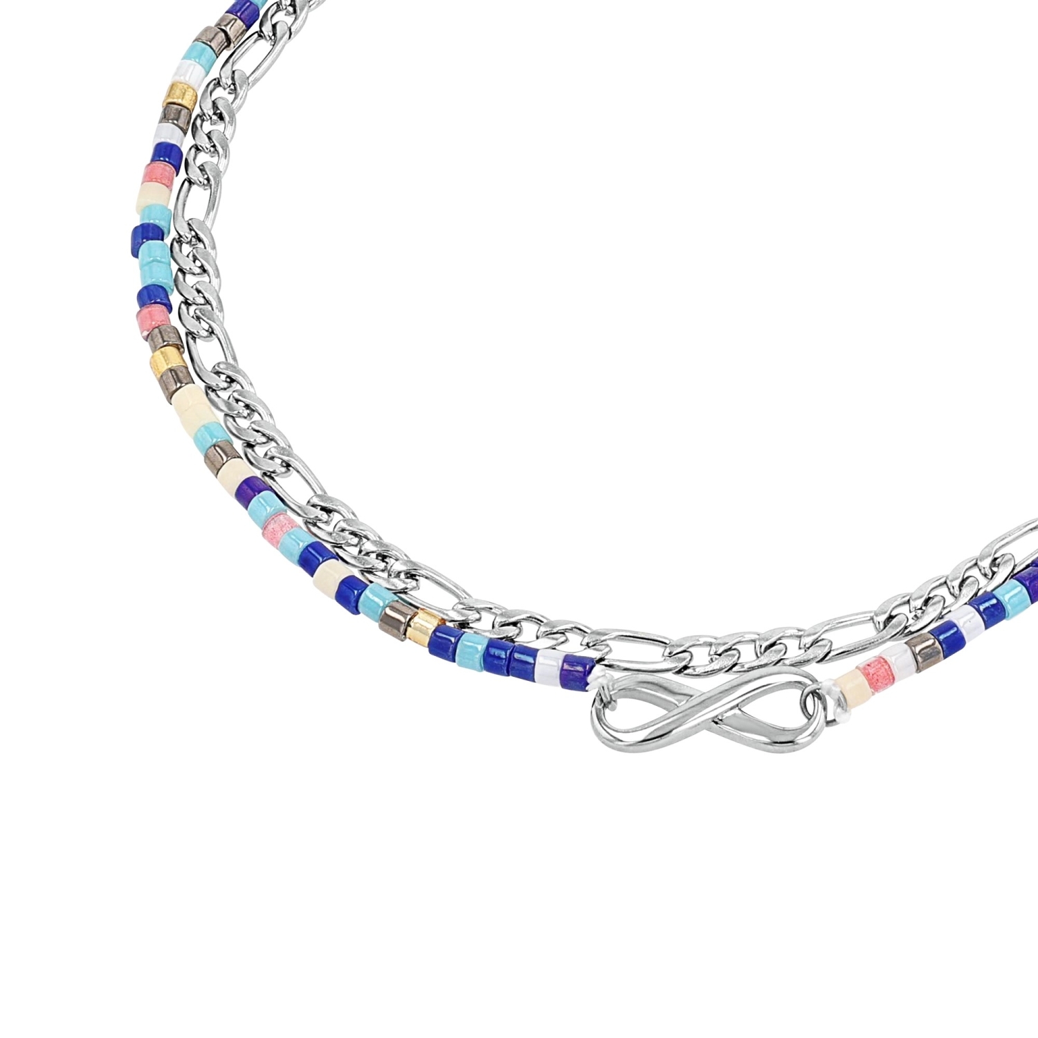 - Kunterbunte Fußkette im angesagten DYI-Design aus robustem Edelstahl 316L. Der Sommerschmuck begeistert durch die vielen bunten Glassteine und den integrierten Anhänger im Infinity-Motiv. Die Kreation überzeugt durch das einzigartige Motiv.