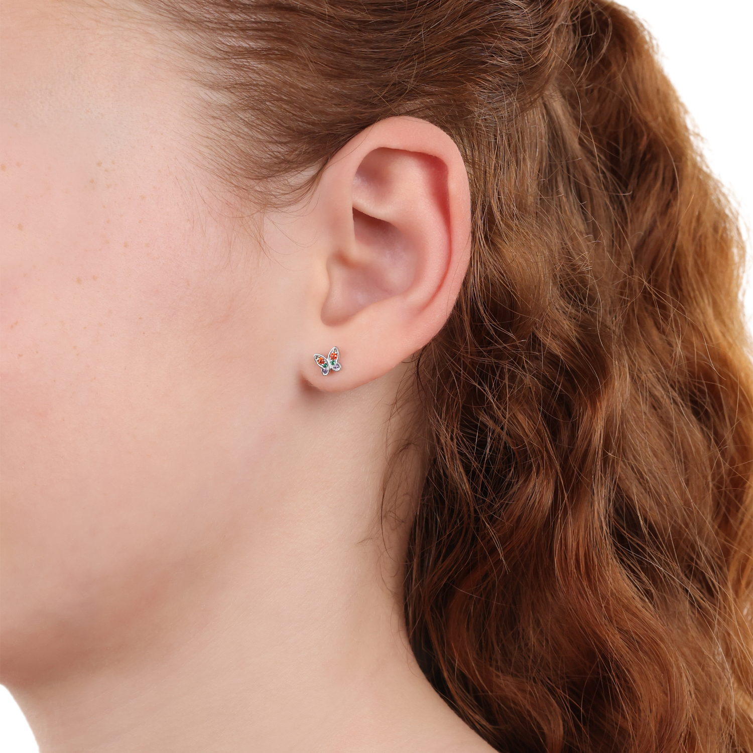 - Der Ohrschmuck mit Schmetterling-Motiv ist mit mehrfarbigen synth. Zirkoniasteinen verziert