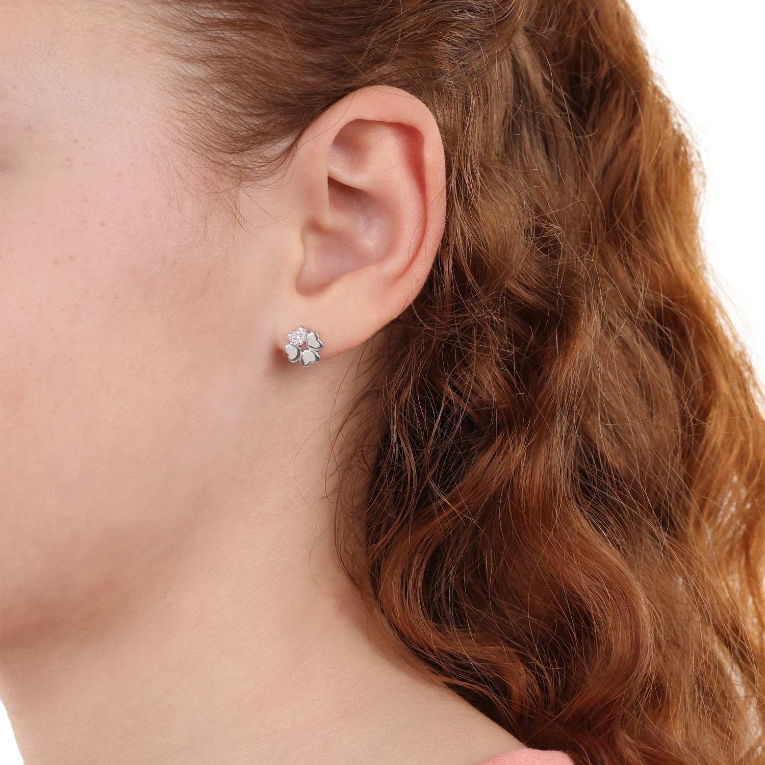 Süße Ohrringe für Mädchen mit Kleeblatt-Motiv von s.Oliver. Der Ohrschmuck für Girls ist aus hochwertigem 925 Sterling Silber gefertigt und mit glitzernden synth. Zirkonia Schmucksteinen besetzt. Die funkelnden kleinen Stecker sind ca. 8 mm x 8 mm und perfekte Alltagsbegleiter für dein Mädchen. Verschenke auch du etwas Glück mit den kleinen Glücksbringern, die in passender Schmuckbox als schöne Aufbewahrung geliefert werden. Vervollständige das Set mit der passenden Kette und dem Armband von s.Oliver.