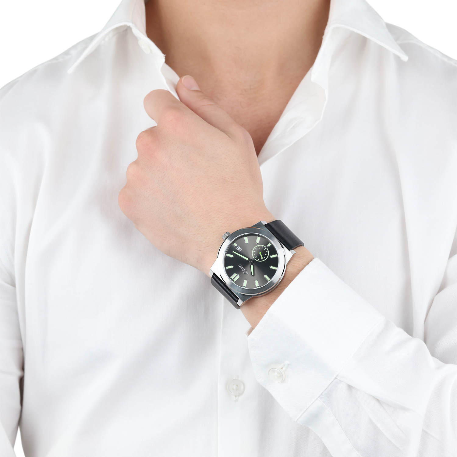 - Das Gehäuse und das massive Gliederarmband der Herrenuhr bestehen aus hochwertigem Edelstahl
