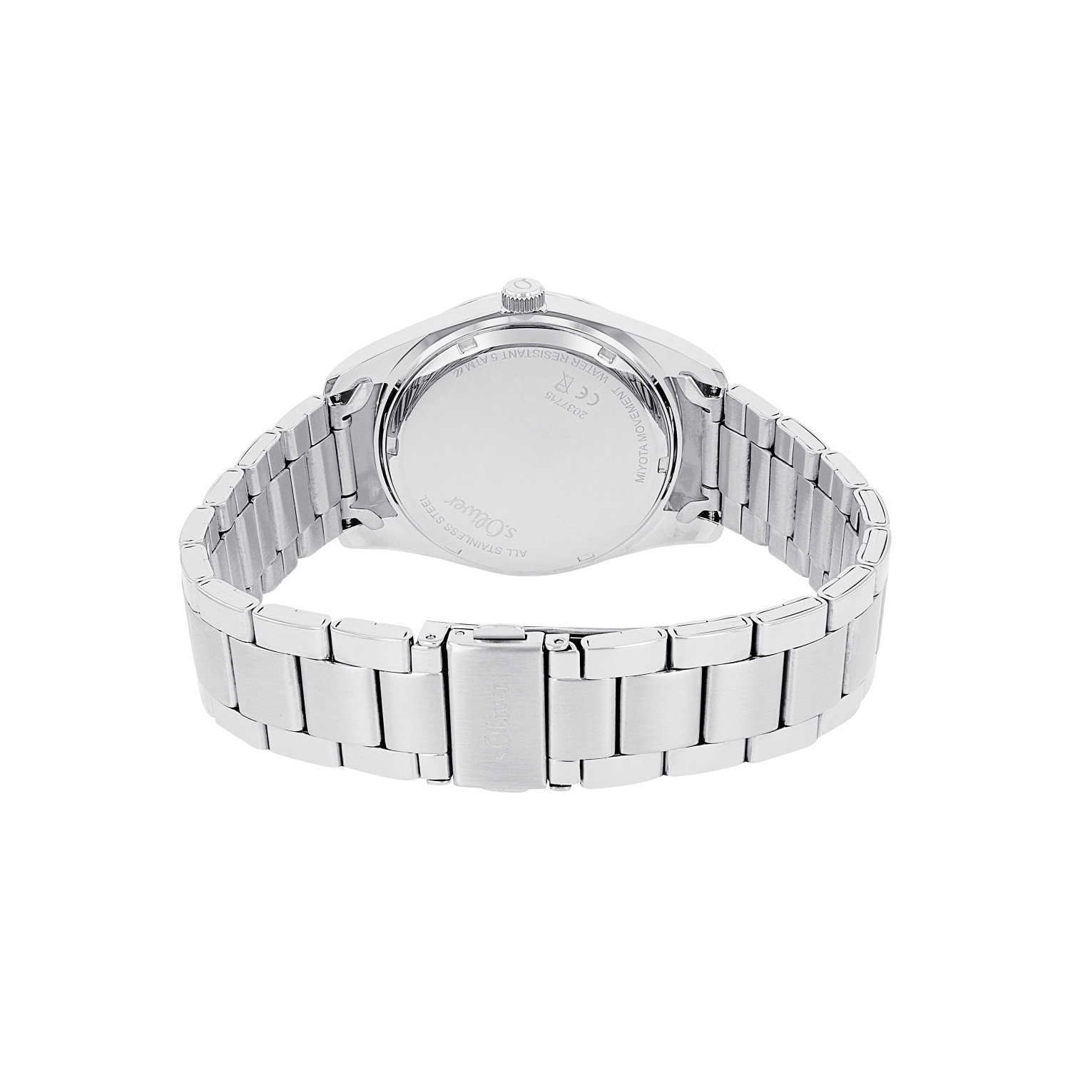 Mit einem klassischen Gehäuse und Gliederarmband aus robustem Edelstahl überzeugt diese Herrenuhr von s.Oliver durch ihre hoch qualitative Ausführung. Kratzfestes Mineralglas schützt das Ziffernblatt mit Datumsanzeige, das einen harmonischen Kontrast zum restlichen Design der Uhr bildet. Für eine persönliche Note lässt sich das Gehäuse zusätzlich nach Belieben gravieren. Das funktionale Finish bilden das analoge Citizen Miyota Uhrwerk mit Sekundenzeiger sowie eine Wasserdichte bis auf 5 Bar. Ein praktischer Kippfaltverschluss sorgt für ein einfaches An- und Ablegen.