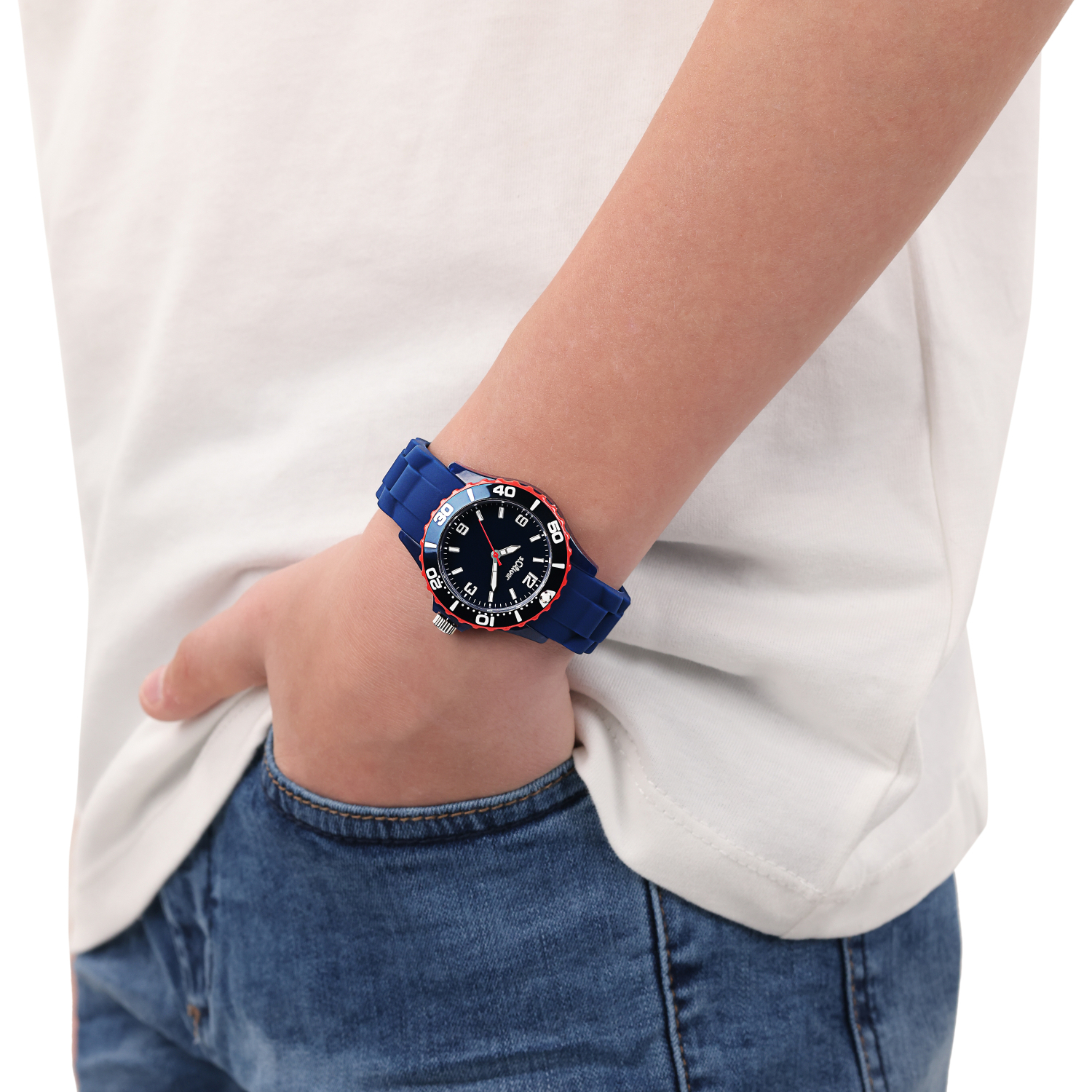 - Die Kinderuhr besitzt eine einfach verstellbare Dornschließe und ist bis auf 3 Bar wasserdicht