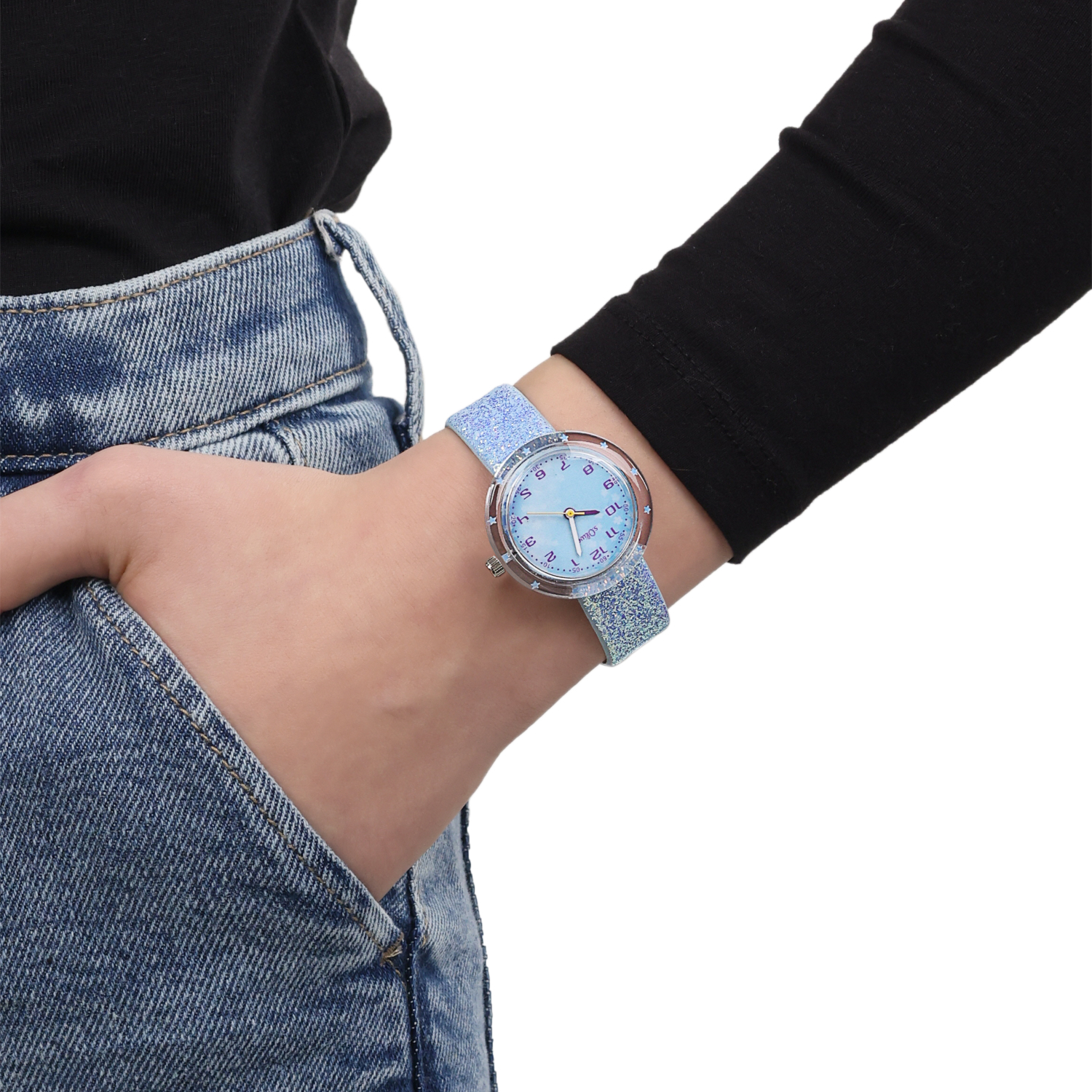 Diese Armbanduhr für Mädchen von s.Oliver ist ein wahrer Glitzer-Traum. Das Armband besteht aus Kunstleder und ist ebenso wie das Ziffernblatt in einem fantasievollen Print gehalten. Stein- und Glitzerapplikationen setzten extra verspielte Akzente. Das Gehäuse aus robustem Kunststoff passt zum restlichen Design der Mädchenuhr und ist zusätzlich nach Belieben gravierbar - so erhält deine kleine Prinzessin ein individuelles Accessoire. Die arabischen Zahlen sind gut leserlich auf dem Ziffernblatt abgebildet, sodass die Trägerin mühelos die Uhrzeit ablesen kann. Das Accessoire für Mädchen besitzt eine einfach verstellbare Dornschließe und ist wasserfest.