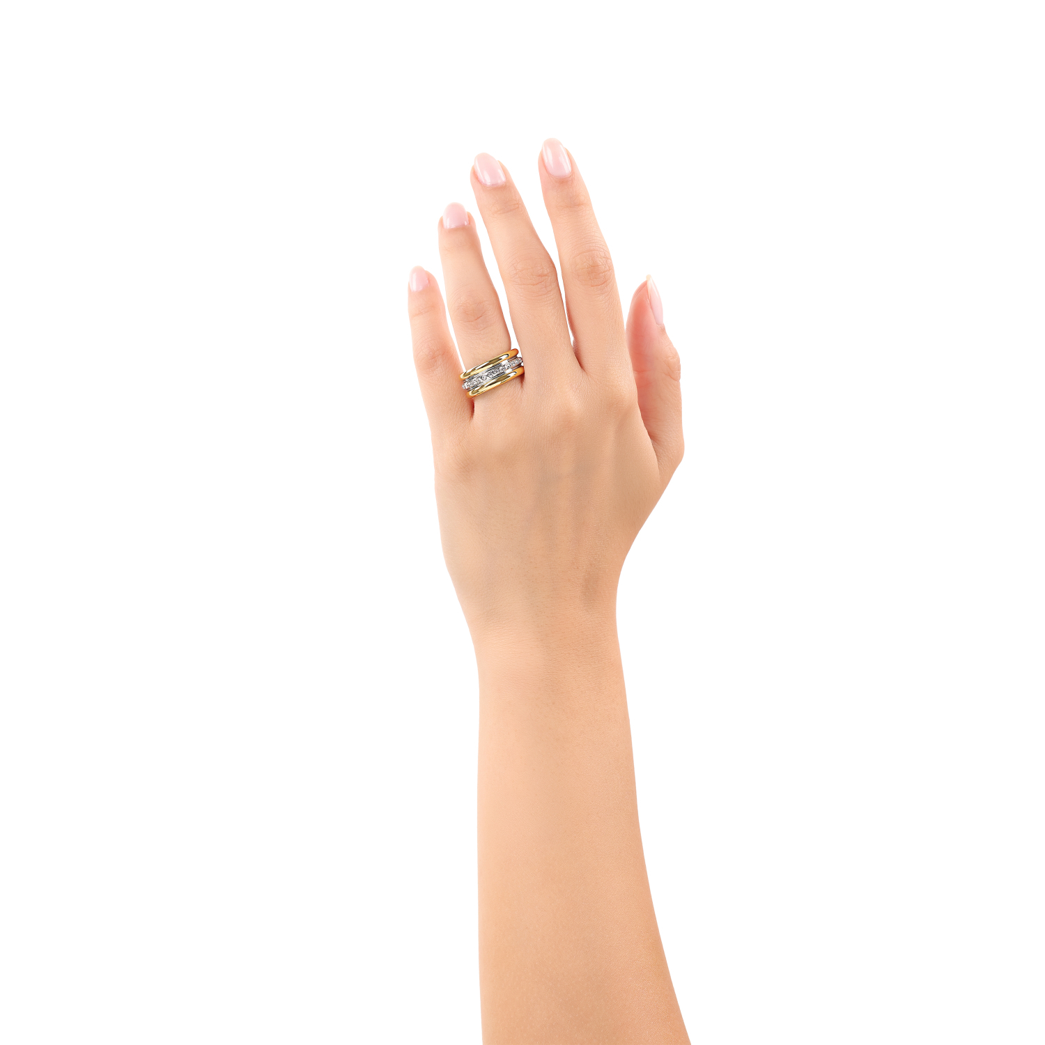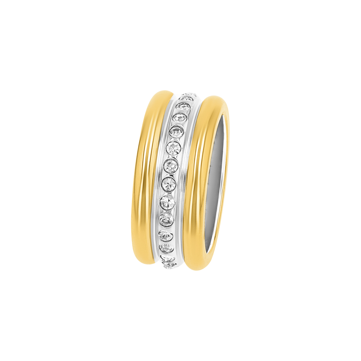 - Strahlende Zirkonia (synth.) Steine zieren die Mitte des zweifarbigen Rings